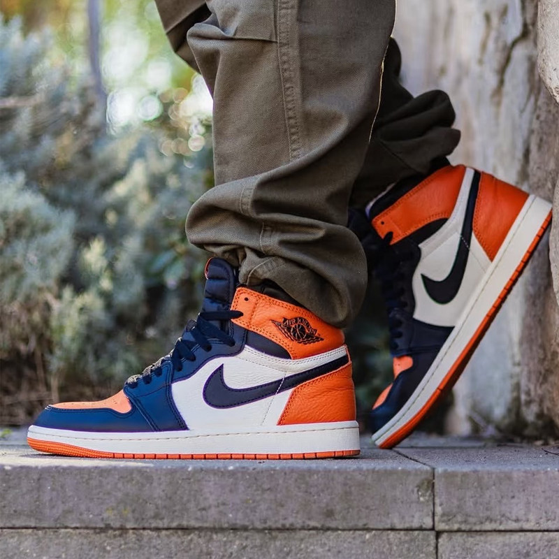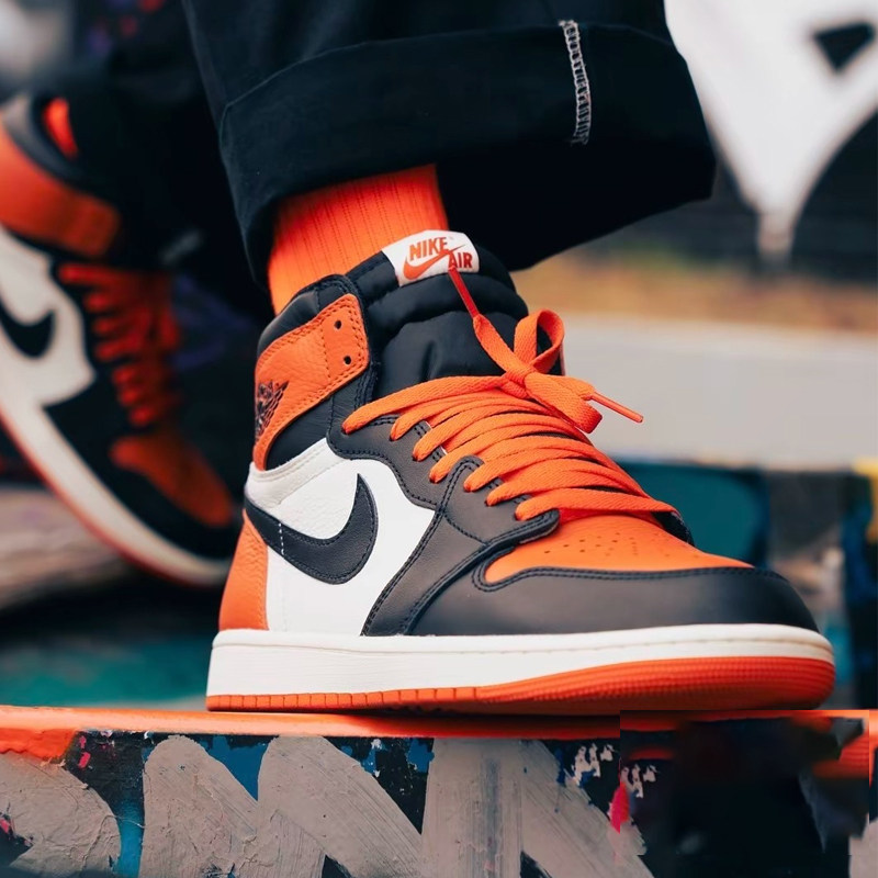 耐克/Nike Air Jordan 1 黑白橙扣碎高帮复古篮球鞋 DZ5485-008