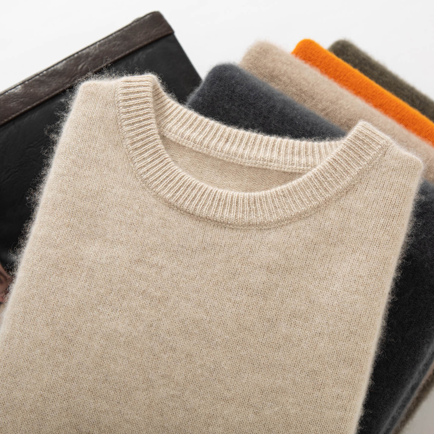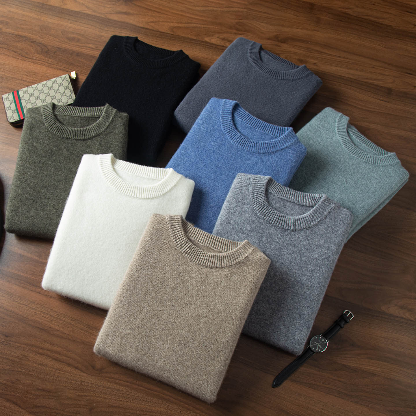 重磅加厚羊绒衫男100%纯山羊绒衫男士保暖毛衣双股圆领针织打底衫