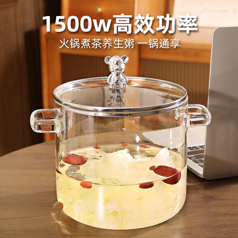 高硼硅玻璃电热养生锅家用多功能煲汤锅耐高温可明火加热透明炖锅