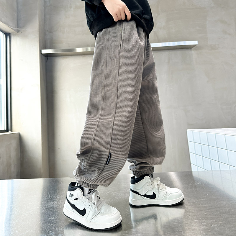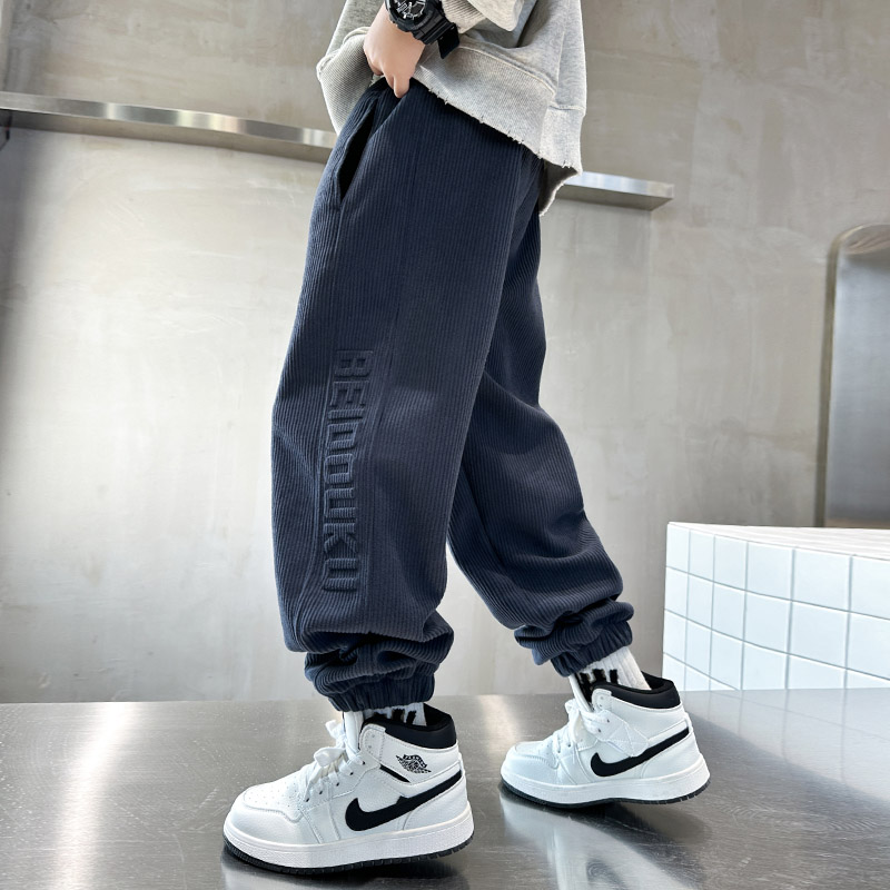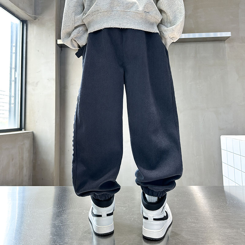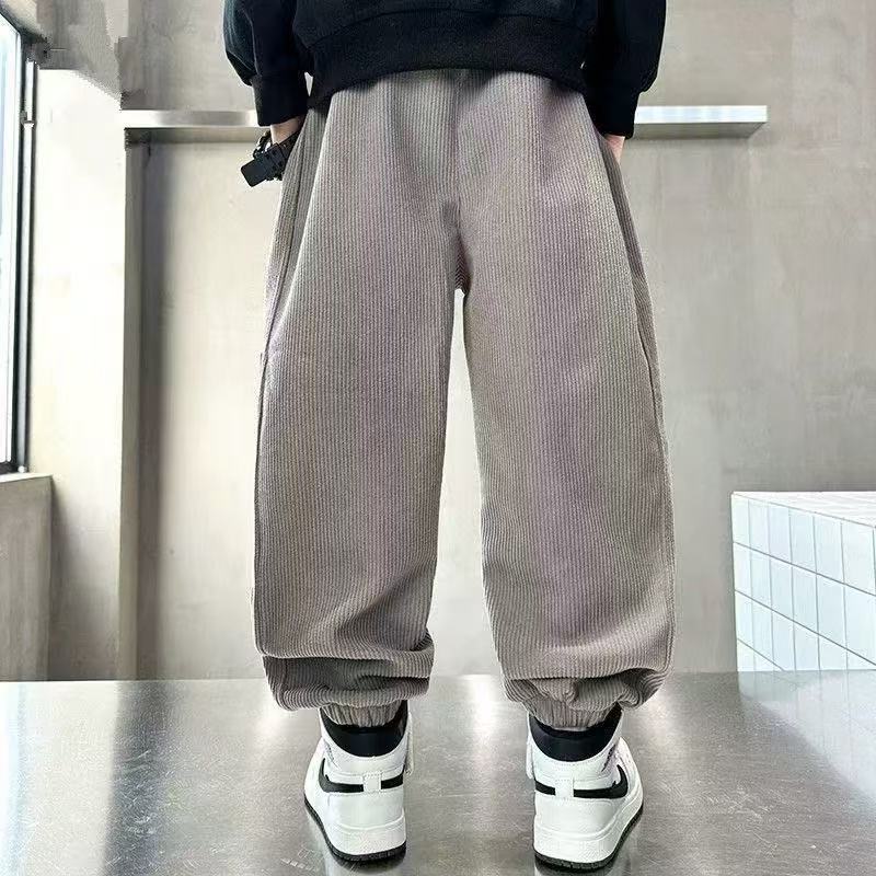 2025新款男童裤子春秋儿童运动休闲裤冬季加绒加厚中大童长裤灰色