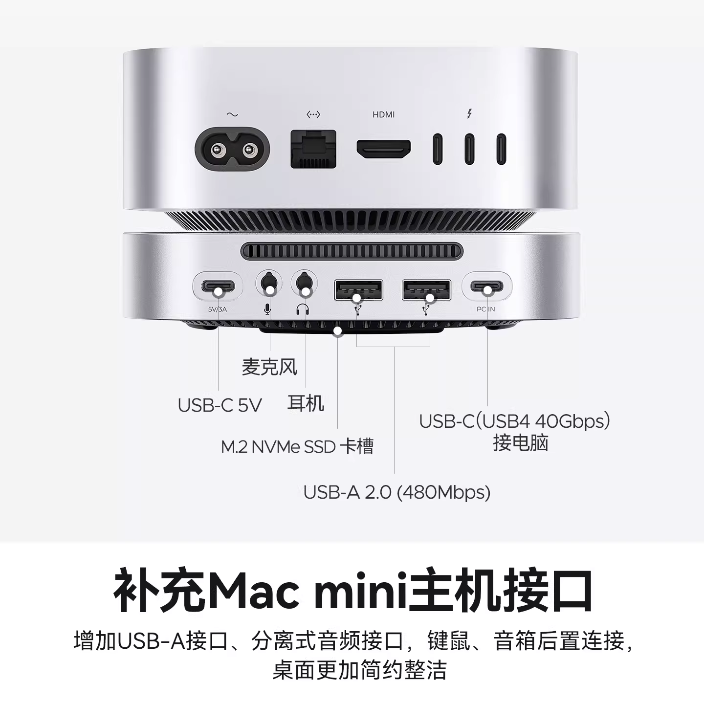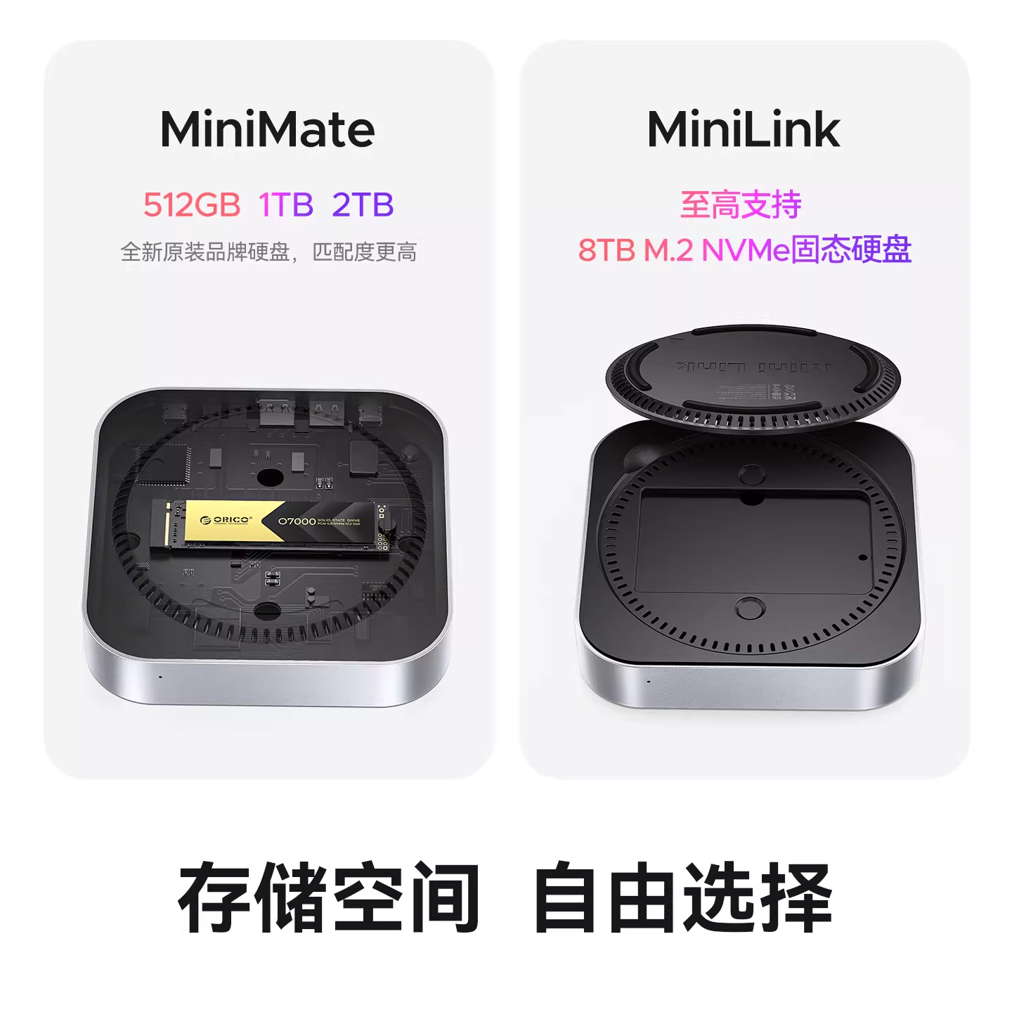 奥睿科MiniLink适用于macmini拓展坞M.2固态硬盘盒内存扩容苹果电脑桌面miniM4pro扩展坞typec接口底座支架