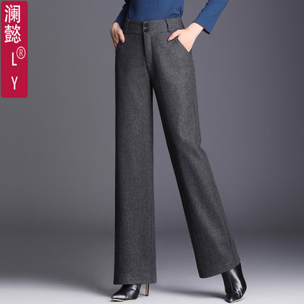 有内衬羊毛呢显瘦西裤直筒裤厚款