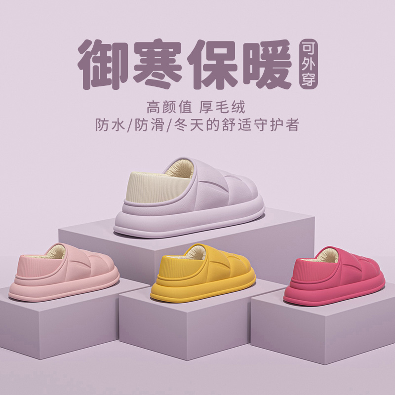 防水棉拖鞋女士秋冬季2025新款室内居家加绒保暖防滑外穿棉鞋男士