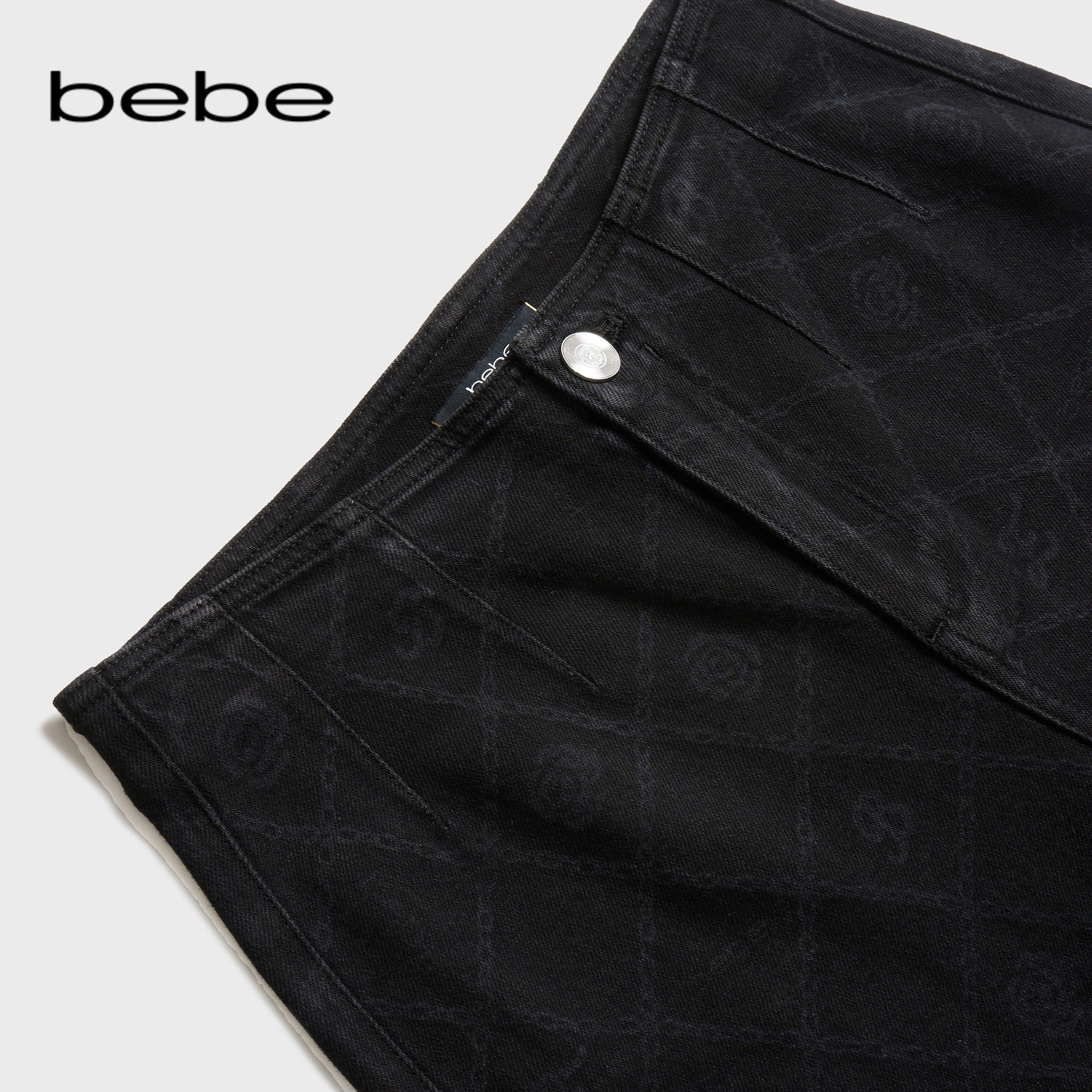 bebe夏季系列女士薄款印花菱形格直筒牛仔裤211002