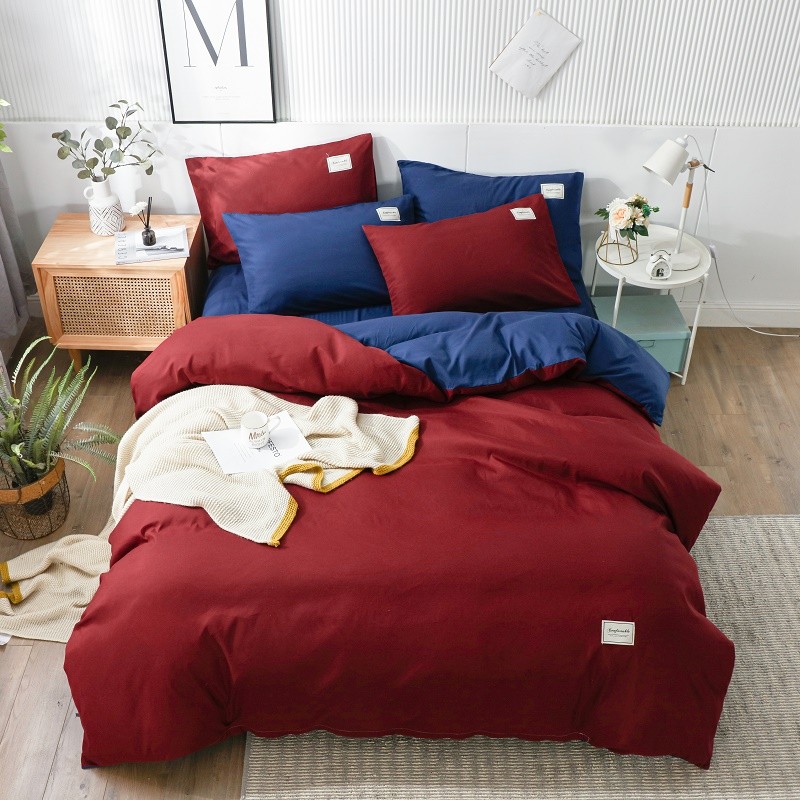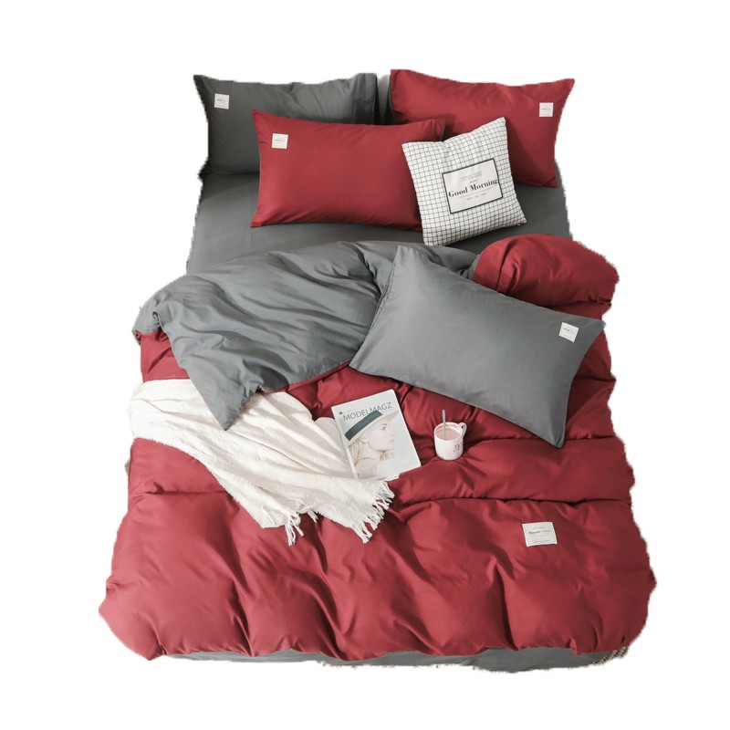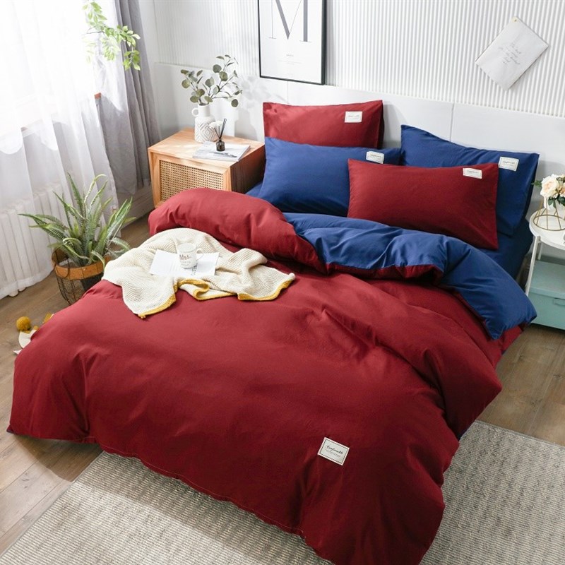 网红纯色床上用品四件套1.5/1.8m被套床单双人被子套件双拼贴布绣