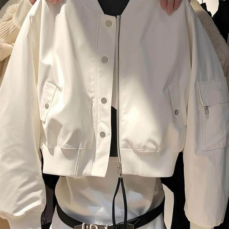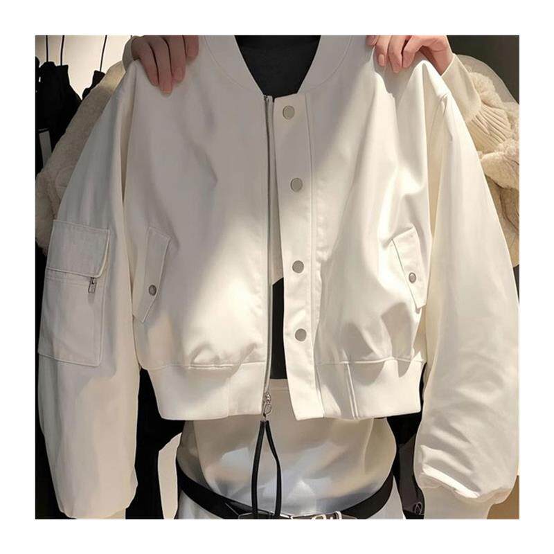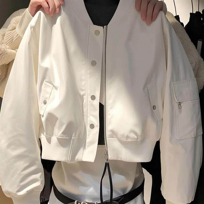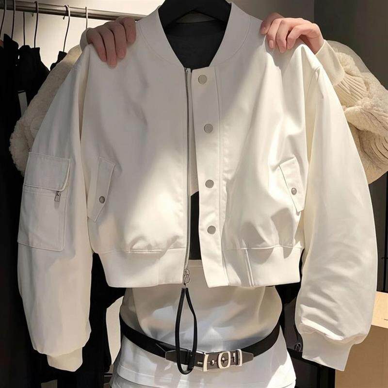 正品高货春装女款2025年新款超火减龄独特漂亮棒球服小香风白色短
