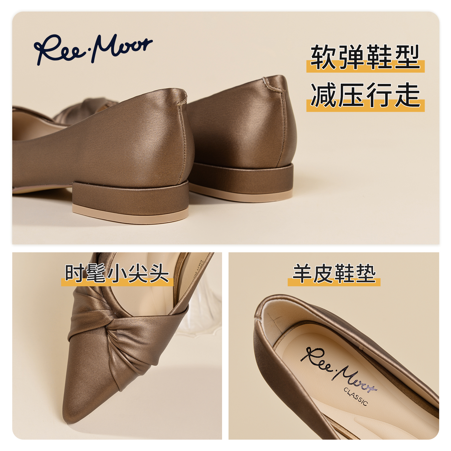 REEMOOR睿慕尖头浅口单鞋女2025秋新款平底芭蕾舞鞋温柔气质女鞋