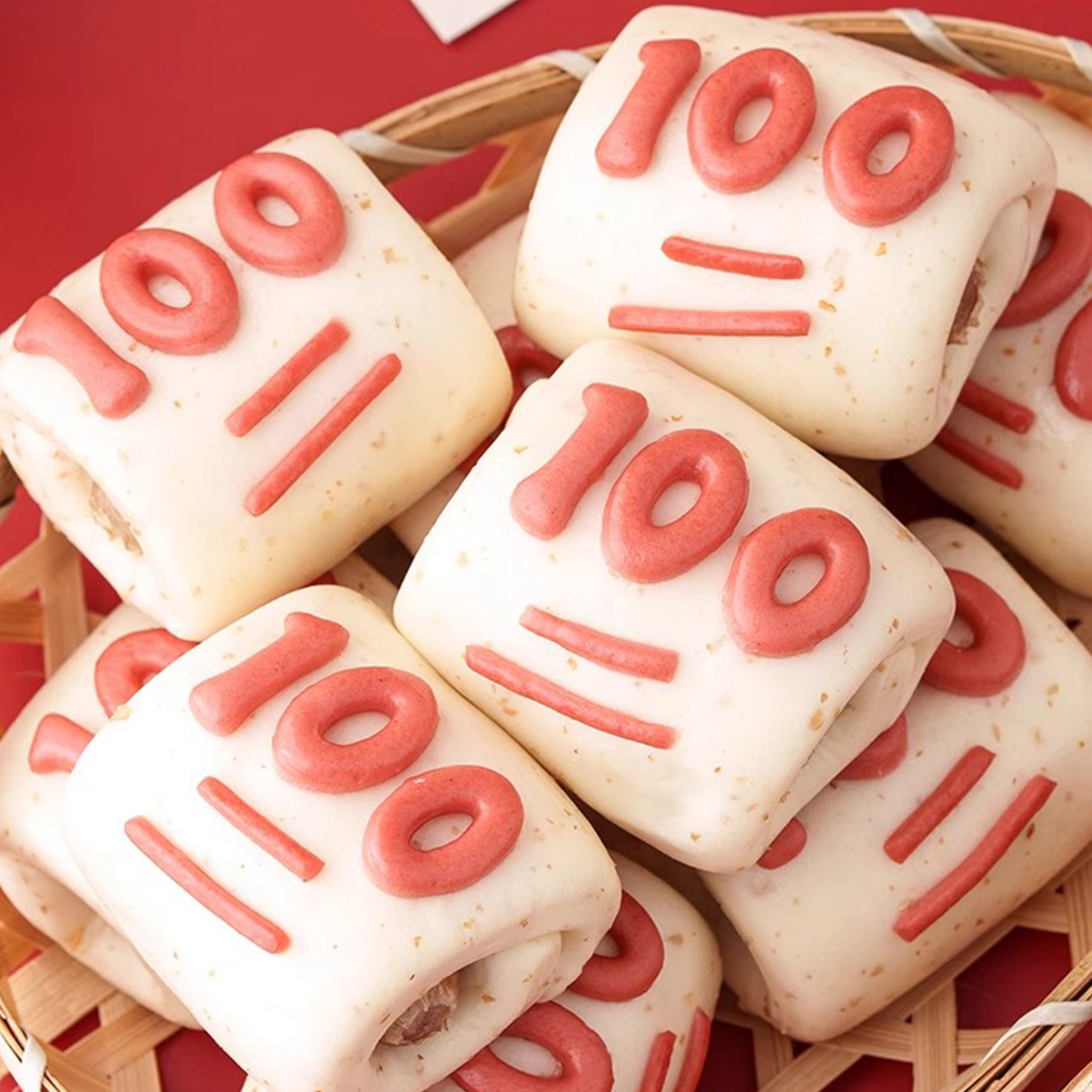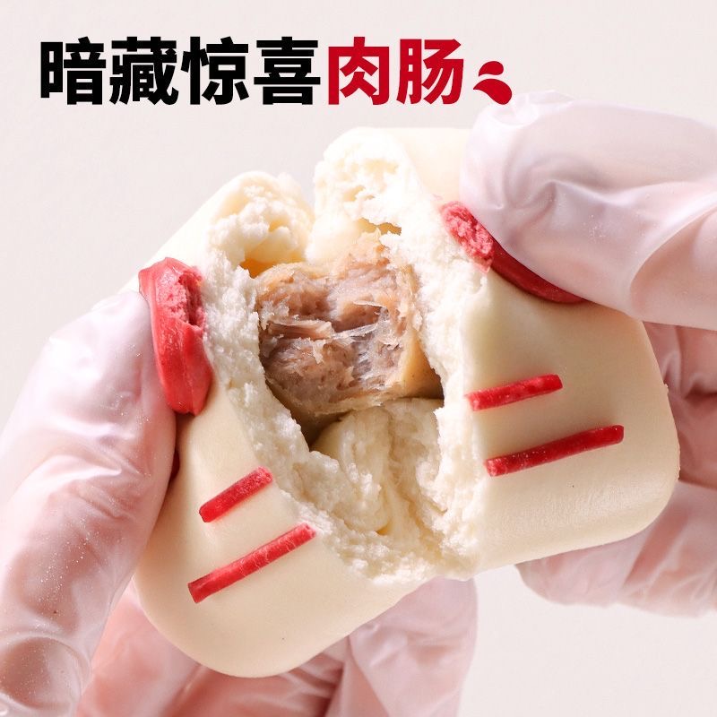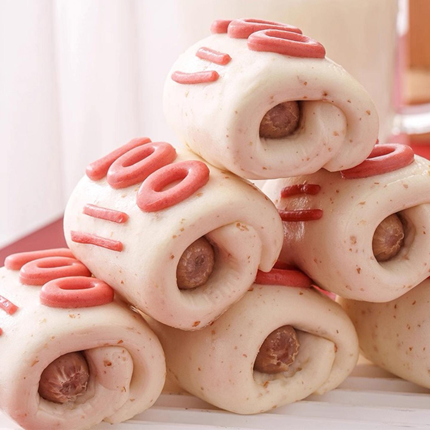 100分满分馒头热狗卷早餐半成品加热即食黑猪肉肠考试卡通包速食