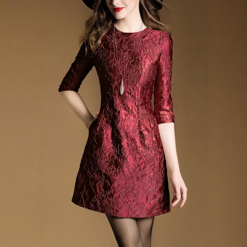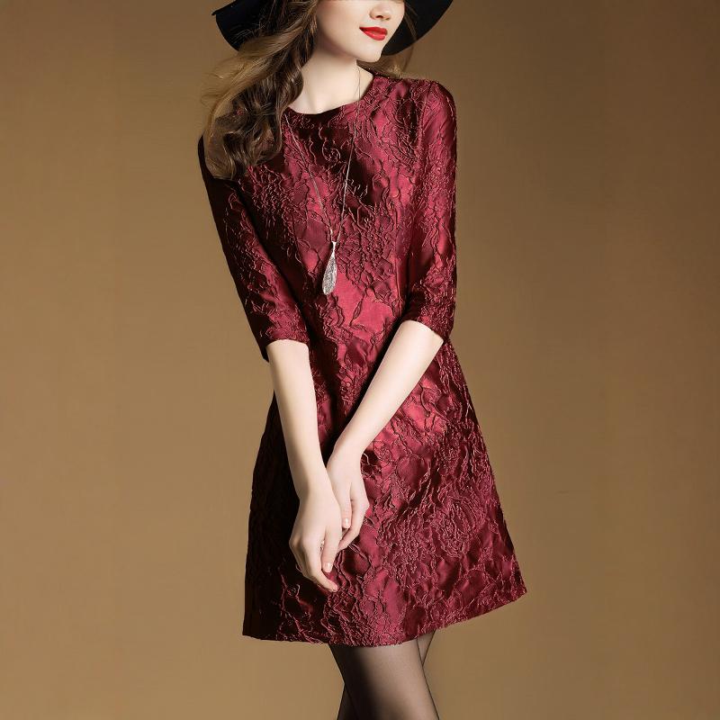外贸出口欧美女中年妈妈七分袖高端提花连衣裙气质优雅高贵A字裙