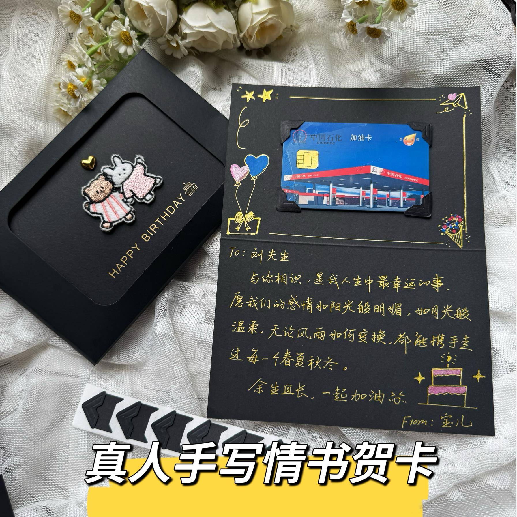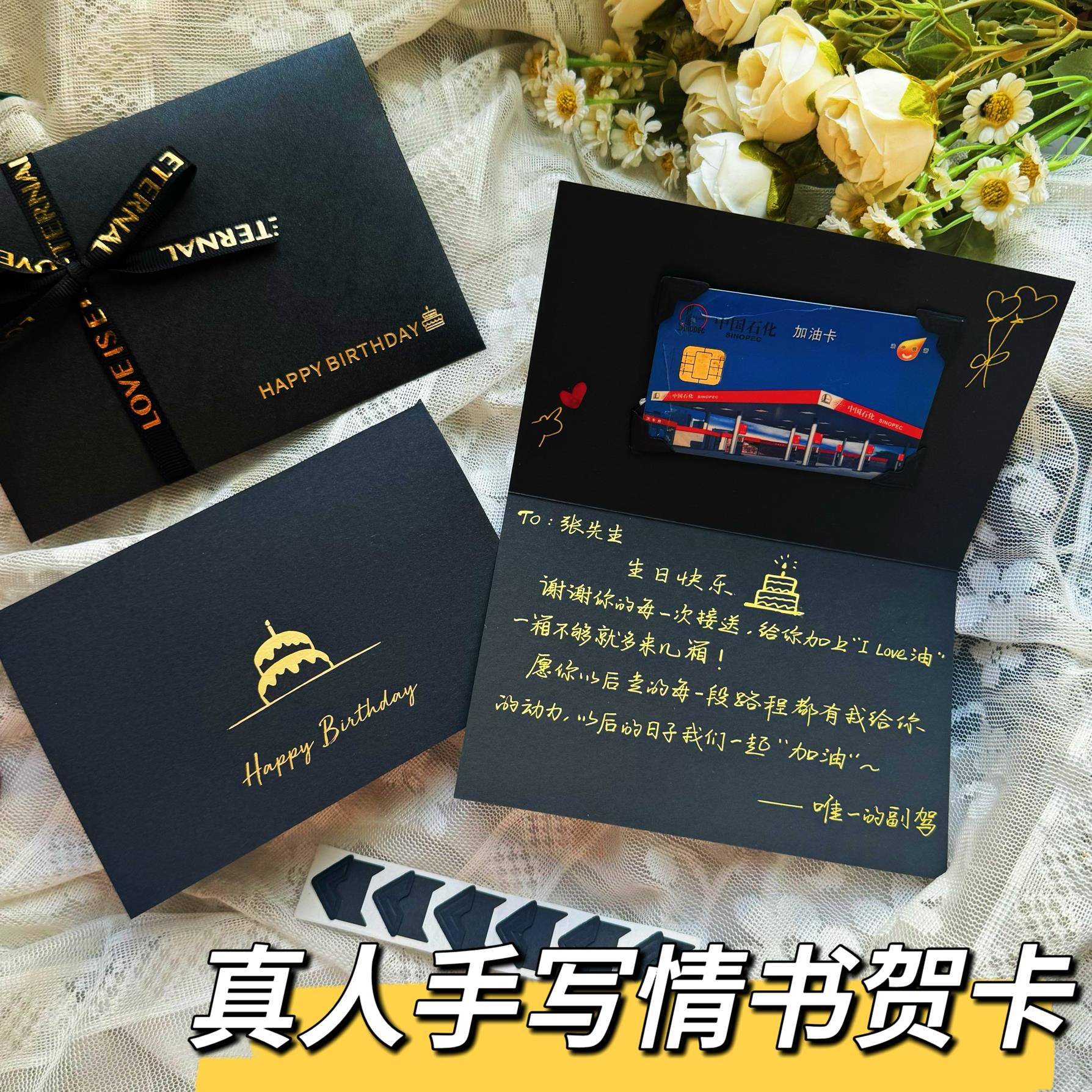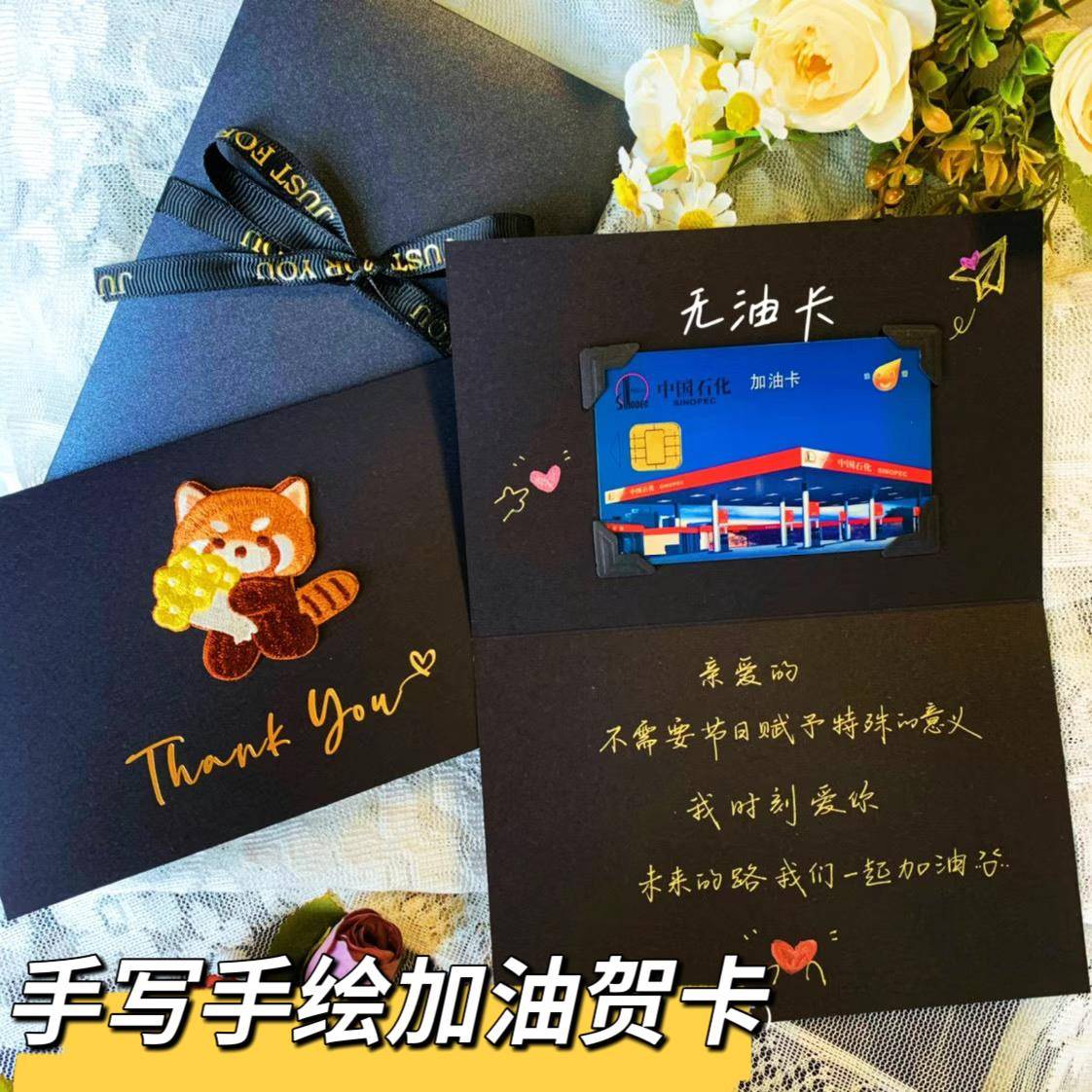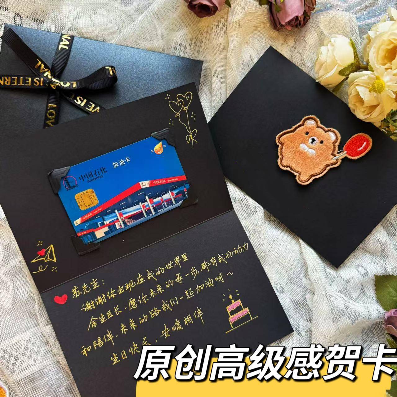 定制贴加油卡的贺卡代手写生日贺卡七夕情人节礼物送老公生日贺卡
