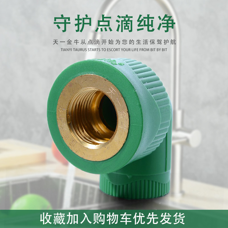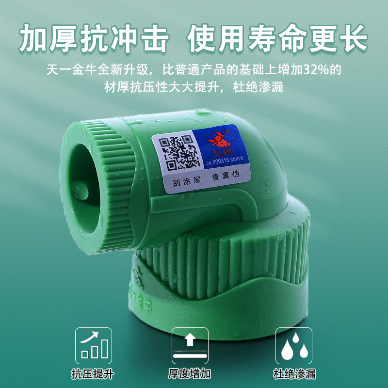 天一 金牛 PPR绿色 内丝弯头 内牙变径弯头 4分 6分 水管管件
