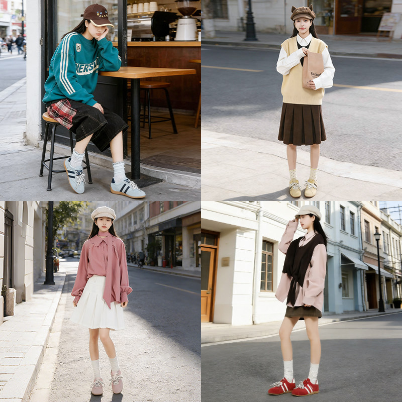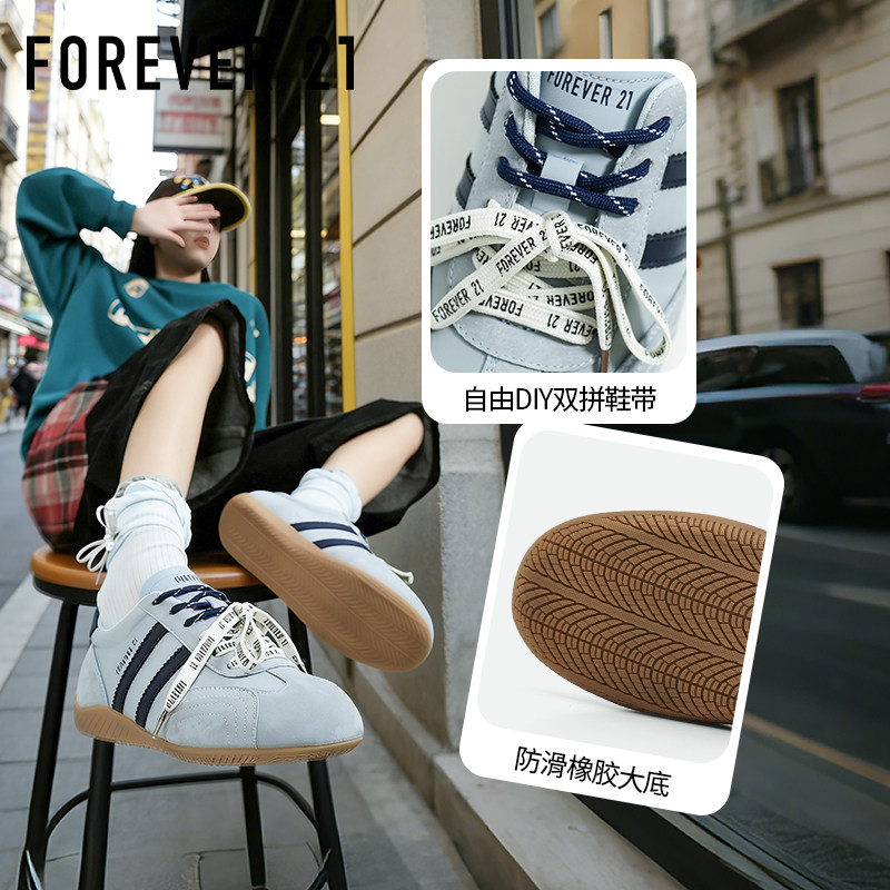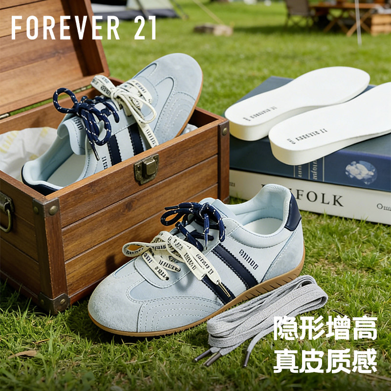 Forever21真皮赛车鞋女款2026新款春季内增高百搭时尚休闲德训鞋