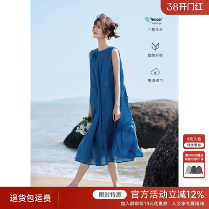 [博主同款]XWI欣未莱赛尔天丝无袖背心连衣裙女夏显瘦海边度假裙