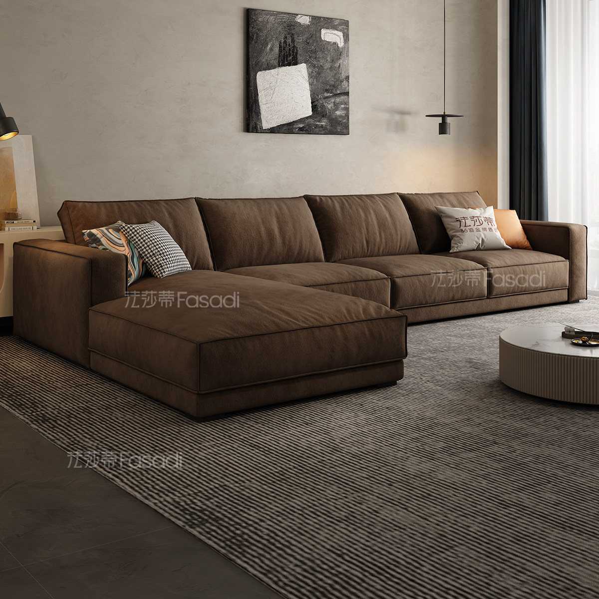 法莎蒂布艺沙发贵妃组合豆腐块意式极简客厅大小户型高靠暗黑风