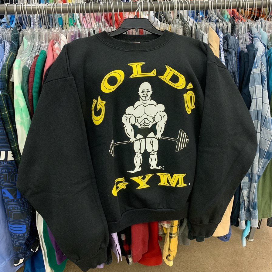 Autismss宝藏屋卡通举重美式vibe风春秋薄款内搭圆领卫衣男女百搭