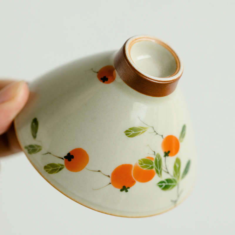 拓土纯手绘柿子斗笠杯家用茶杯陶瓷品茗杯单个杯子喝茶杯功夫茶具