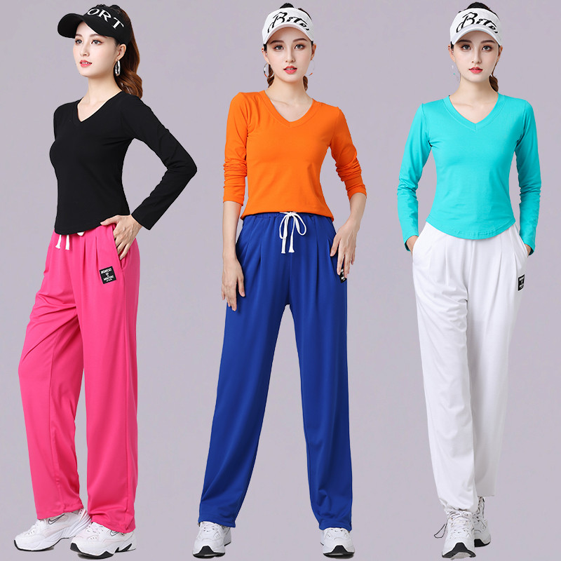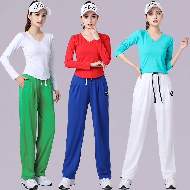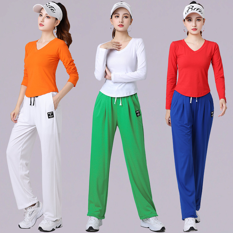 爆卖新款广场舞运动套装新款修身v长袖时尚跳健身操舞蹈服装春秋