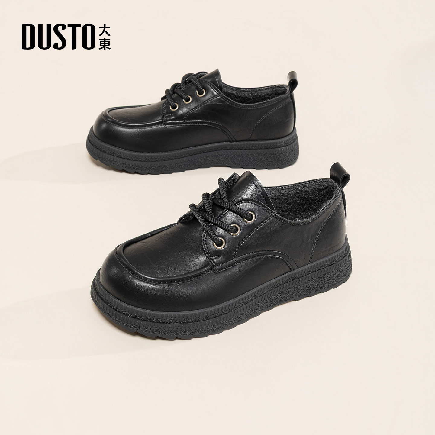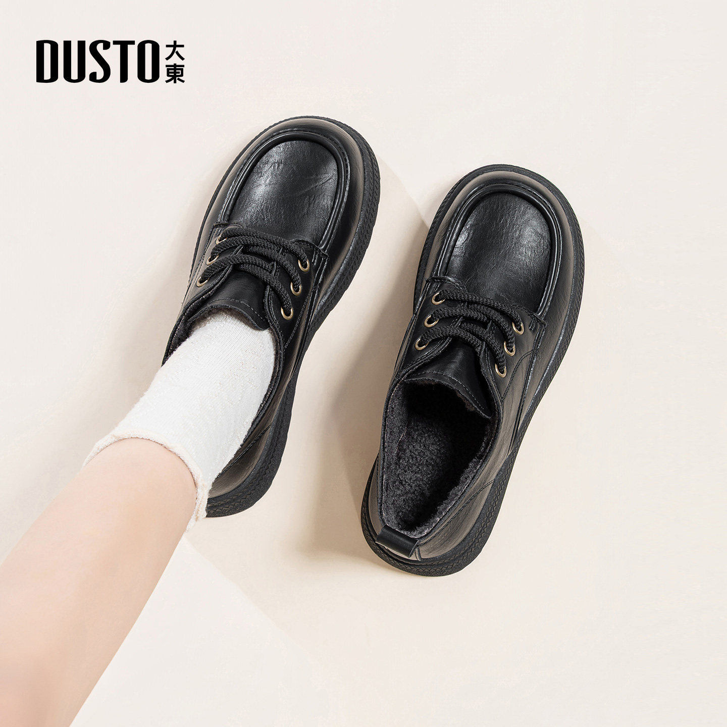 大东女鞋加绒乐福鞋2025冬季新款英伦风保暖平底圆头小单鞋毛毛鞋
