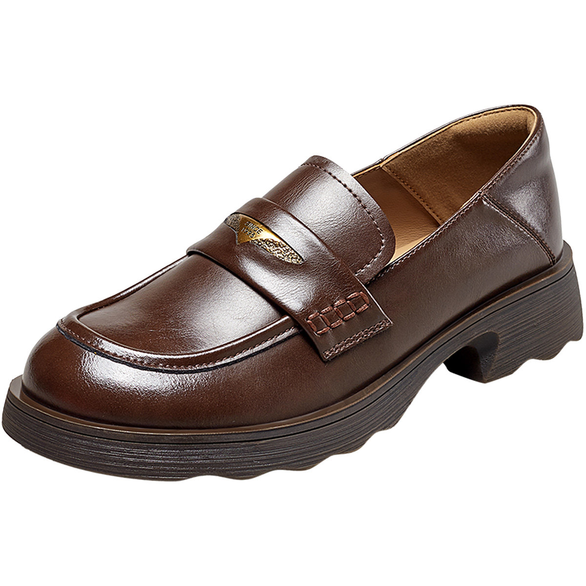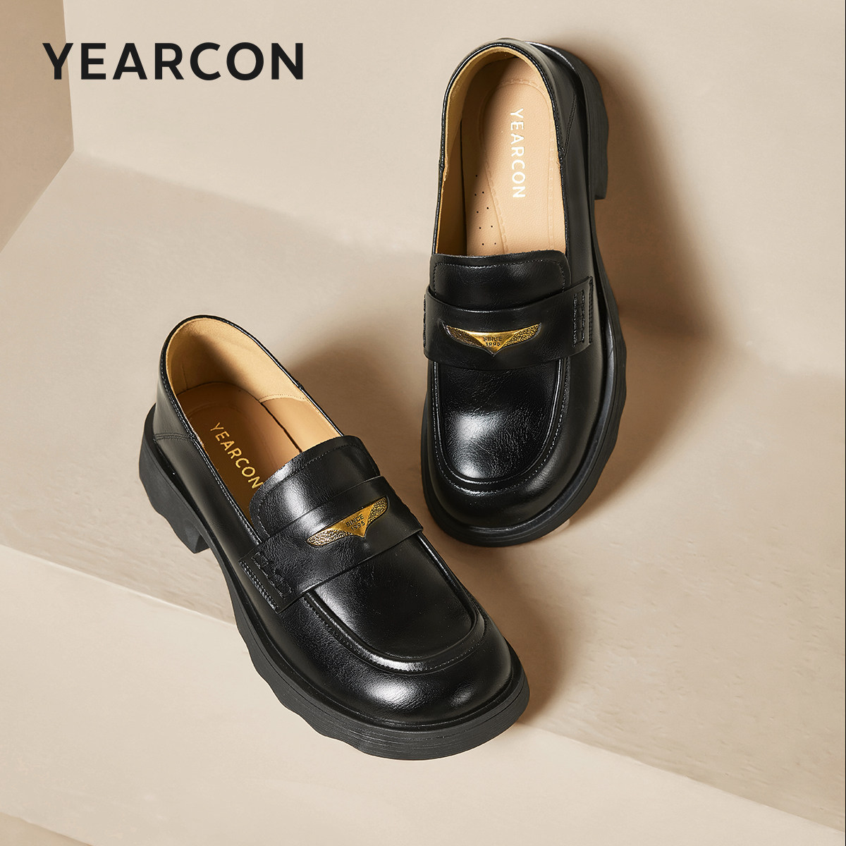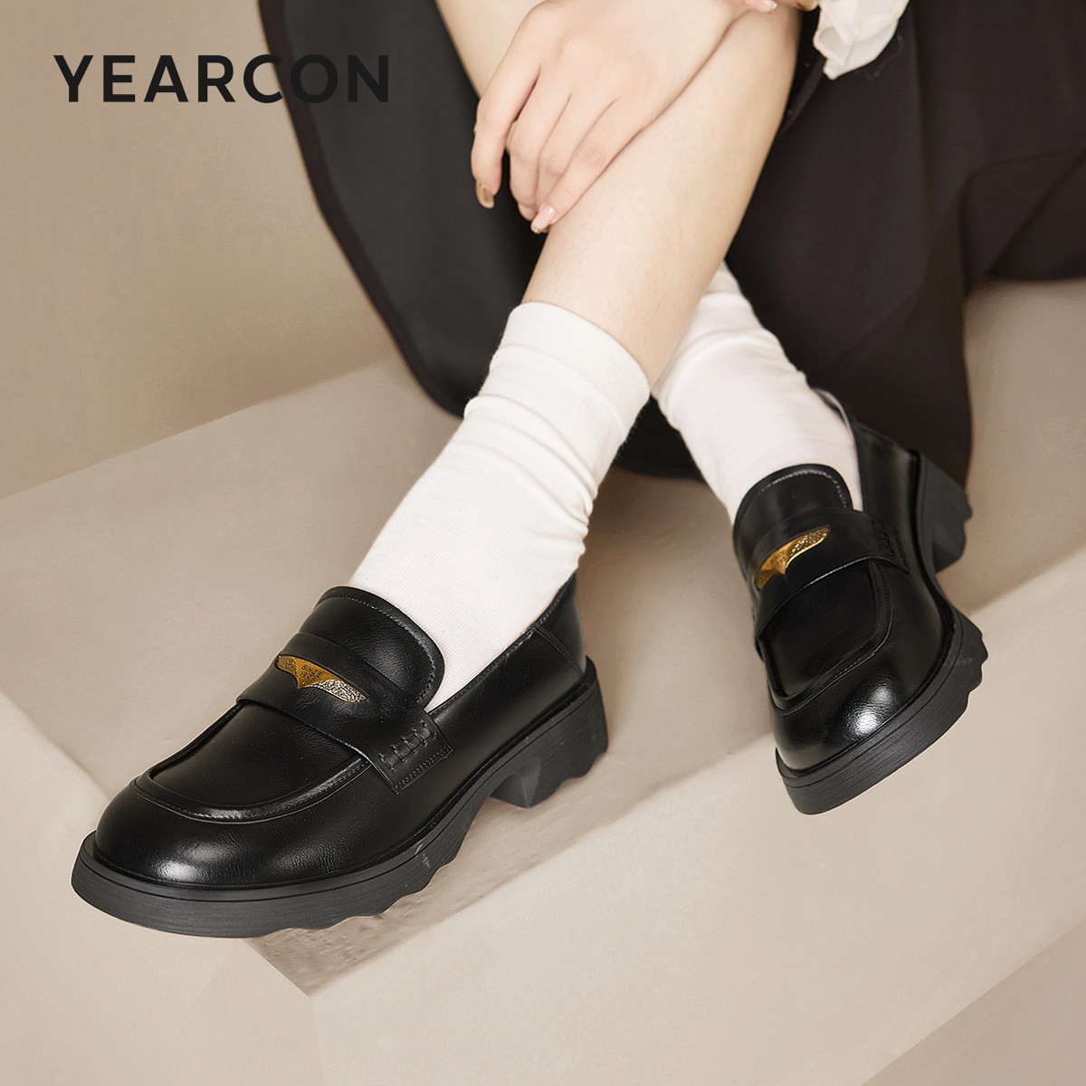 意尔康女鞋2025秋季新款时尚海鸥乐福鞋一脚蹬小皮鞋女英伦风单鞋