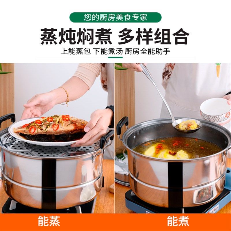 28-超大加厚不锈钢蒸锅层汤锅家用蒸馒头笼屉电磁炉燃气通用