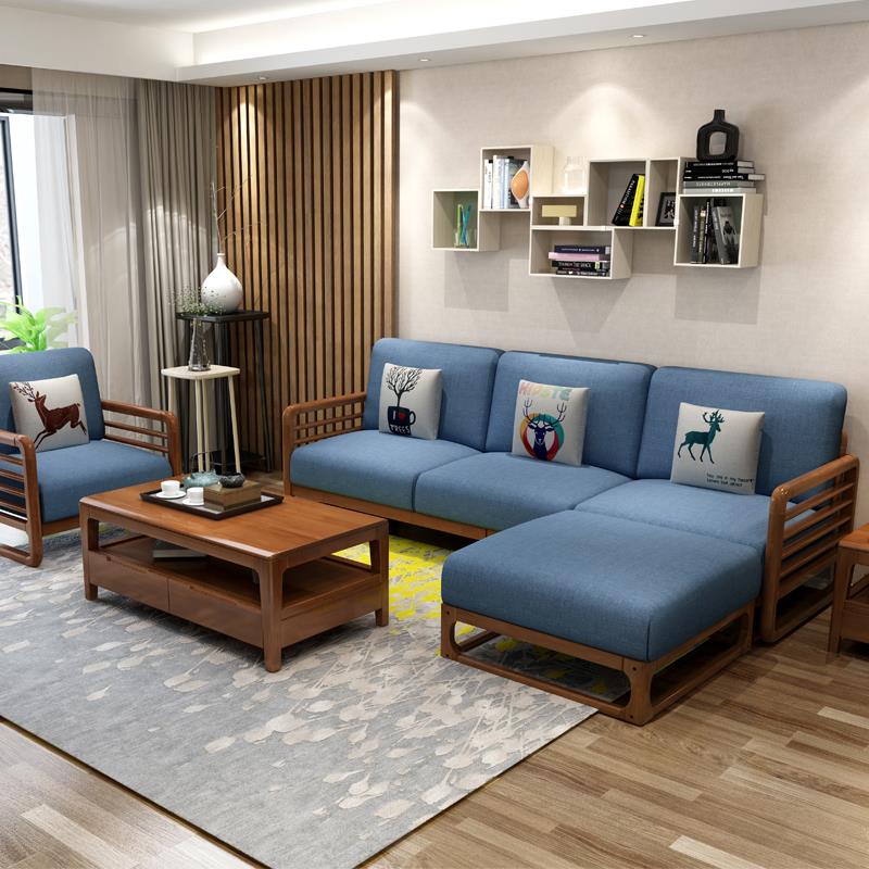 北欧实木沙发组合小户型现代简约布艺贵妃沙发客厅套装三人四人位