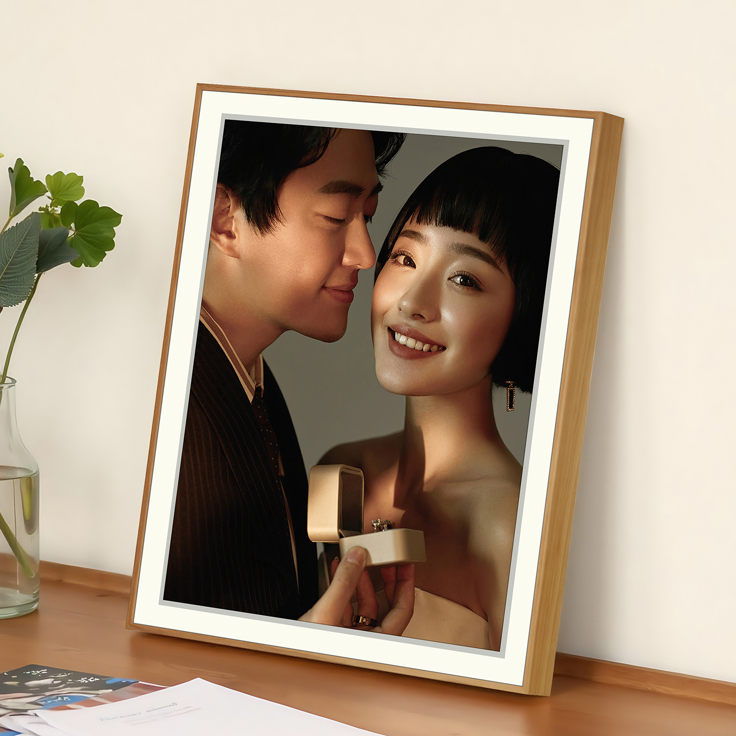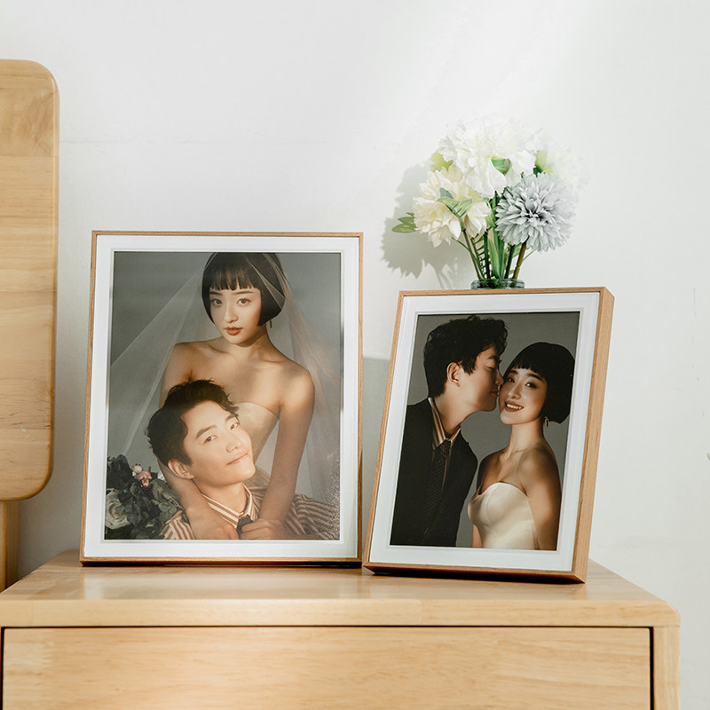 定制简约婚纱照窄边相框摆台高级感结婚洗照片做成桌摆宝宝照10寸