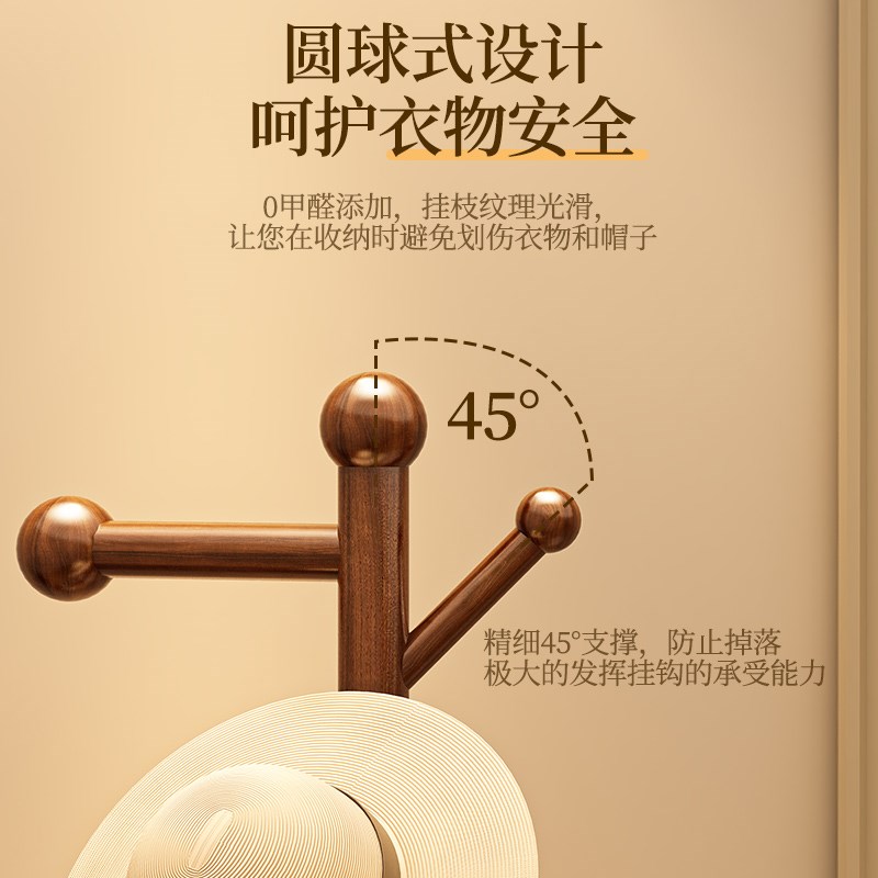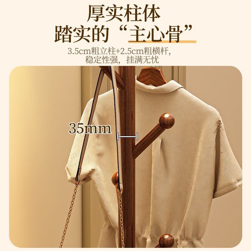 实木衣帽架床头柜一体挂衣架落地卧室玄关家用衣架室内晾衣服架子