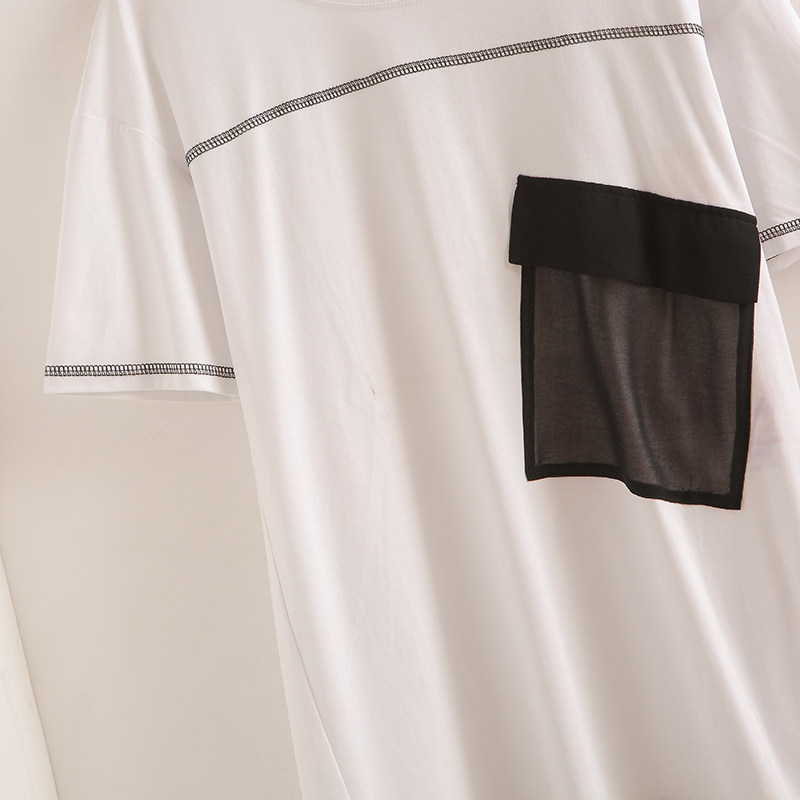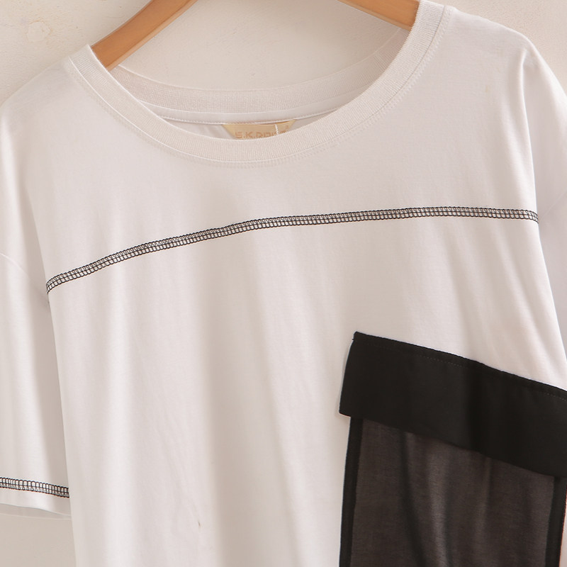 石系列品牌折扣专柜正品女装春夏宽松短袖舒适纯棉T恤中长款上衣
