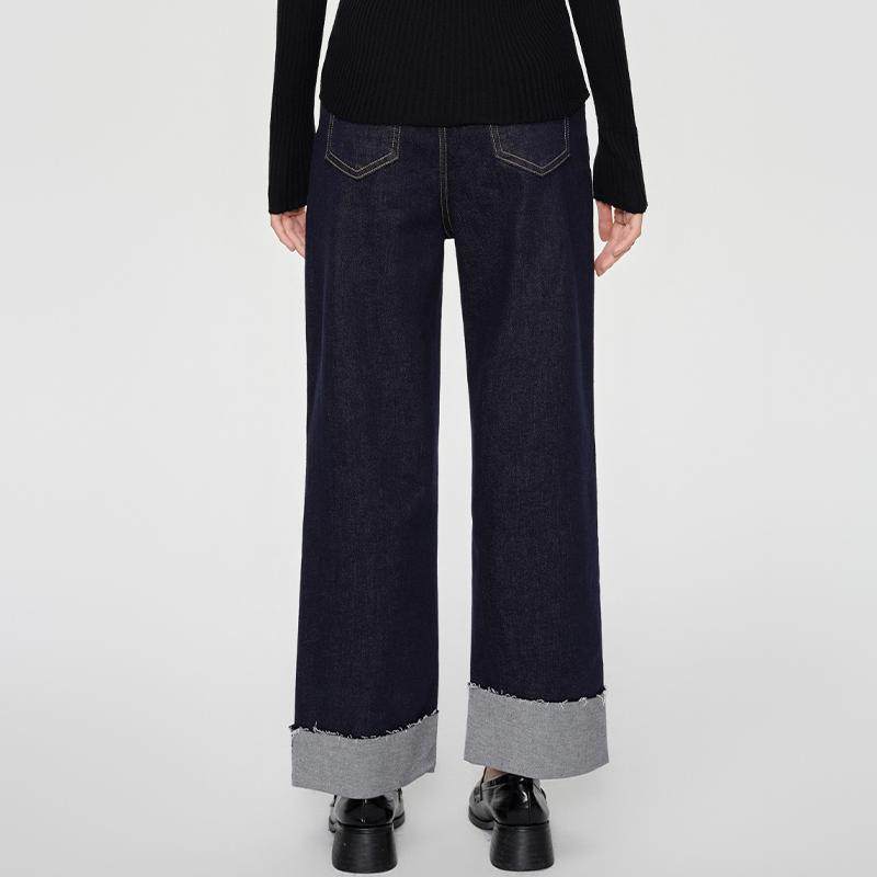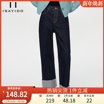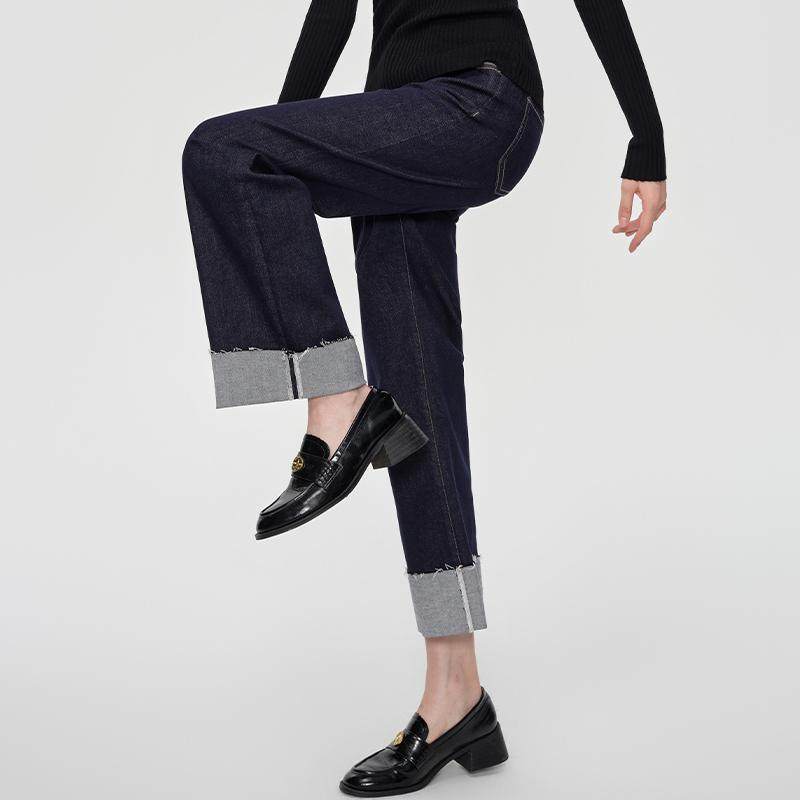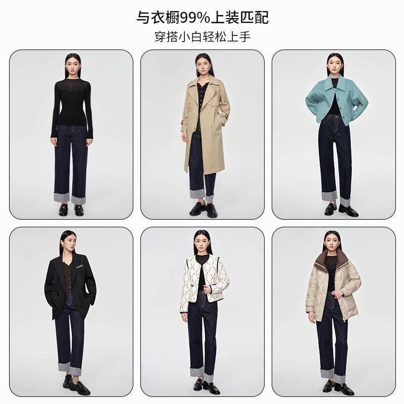 傲丝度高腰直筒裤女春秋季新品宽松显瘦水洗牛仔裤小个子休闲裤子