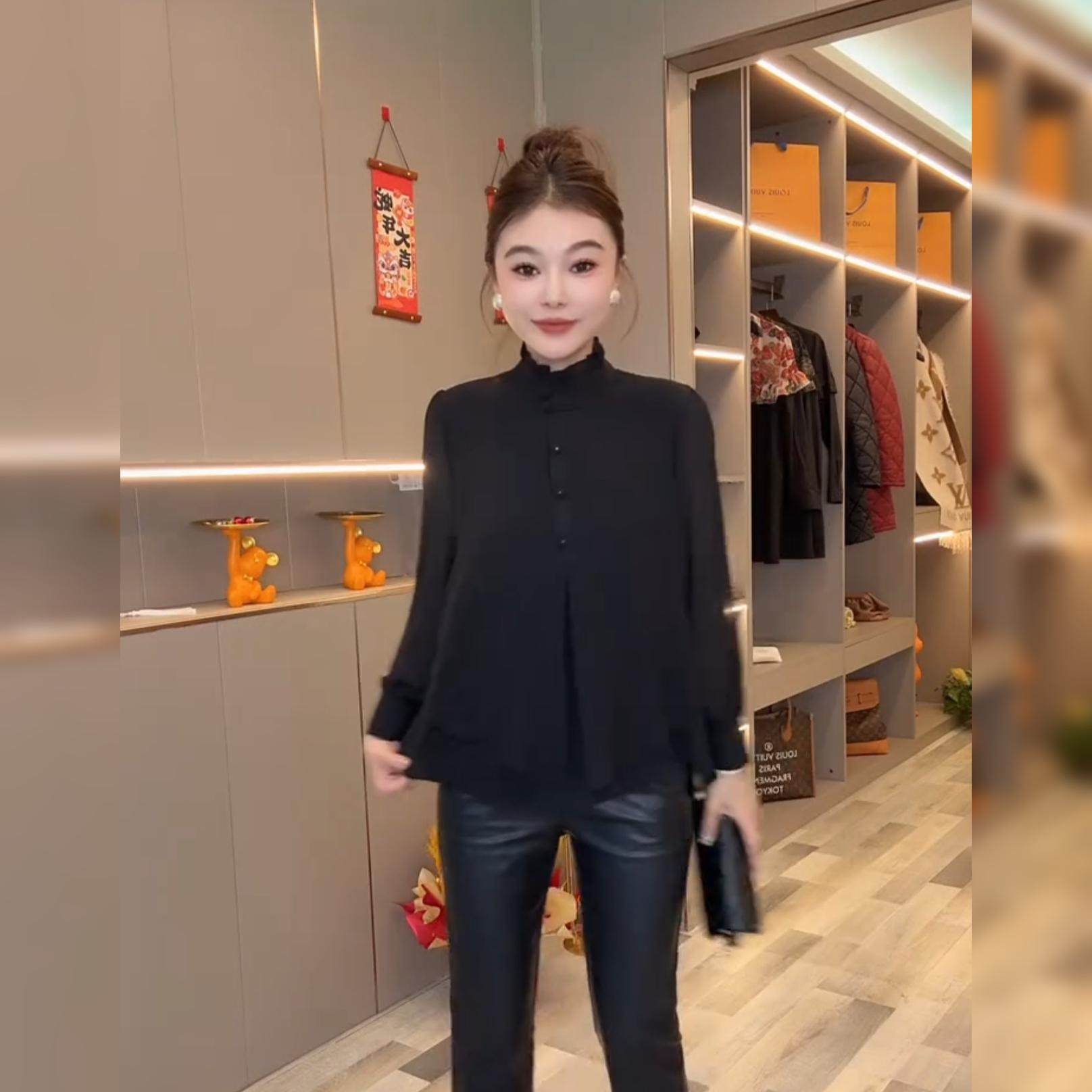 雪纺衬衫女2025春秋新款时尚大牌设计感宽松双层遮肚子气质上衣