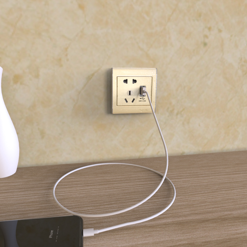 泰力开关面板 86型家用一开五孔插座墙面暗装香槟色带usb墙插86EF