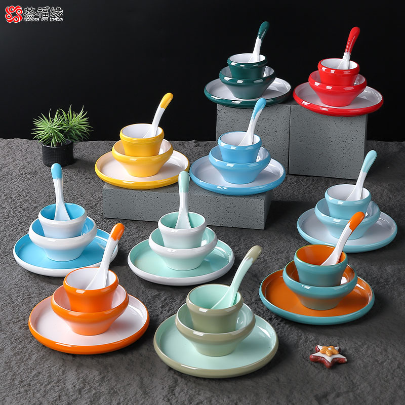 密胺餐具摆台餐具套装四件套创意餐厅饭店酒店火锅店专用碗碟勺杯