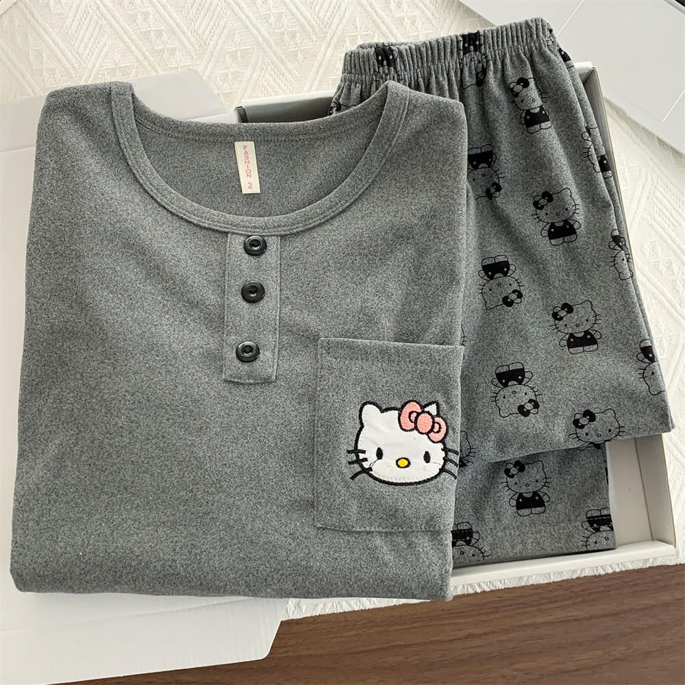 德绒睡衣女韩版可外穿秋冬季保暖甜美加绒加厚可外穿加大码家居服