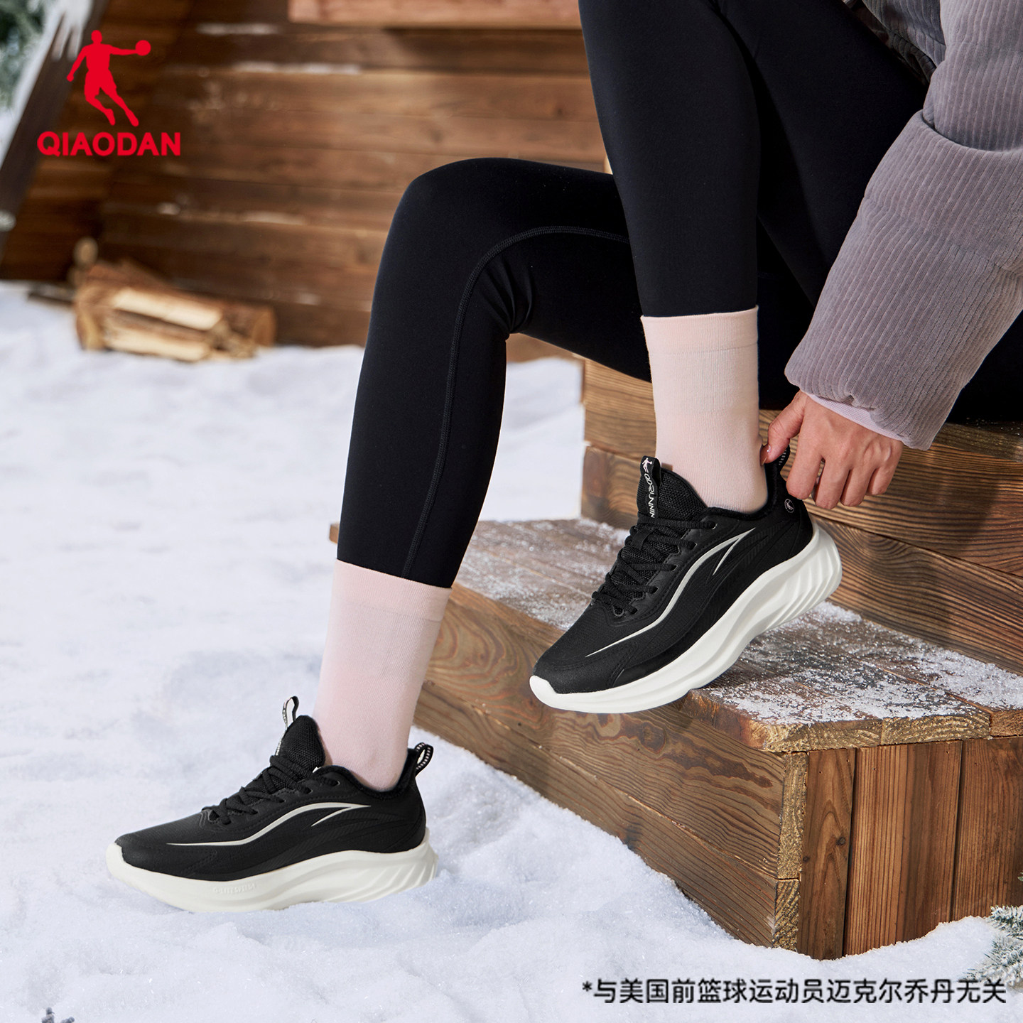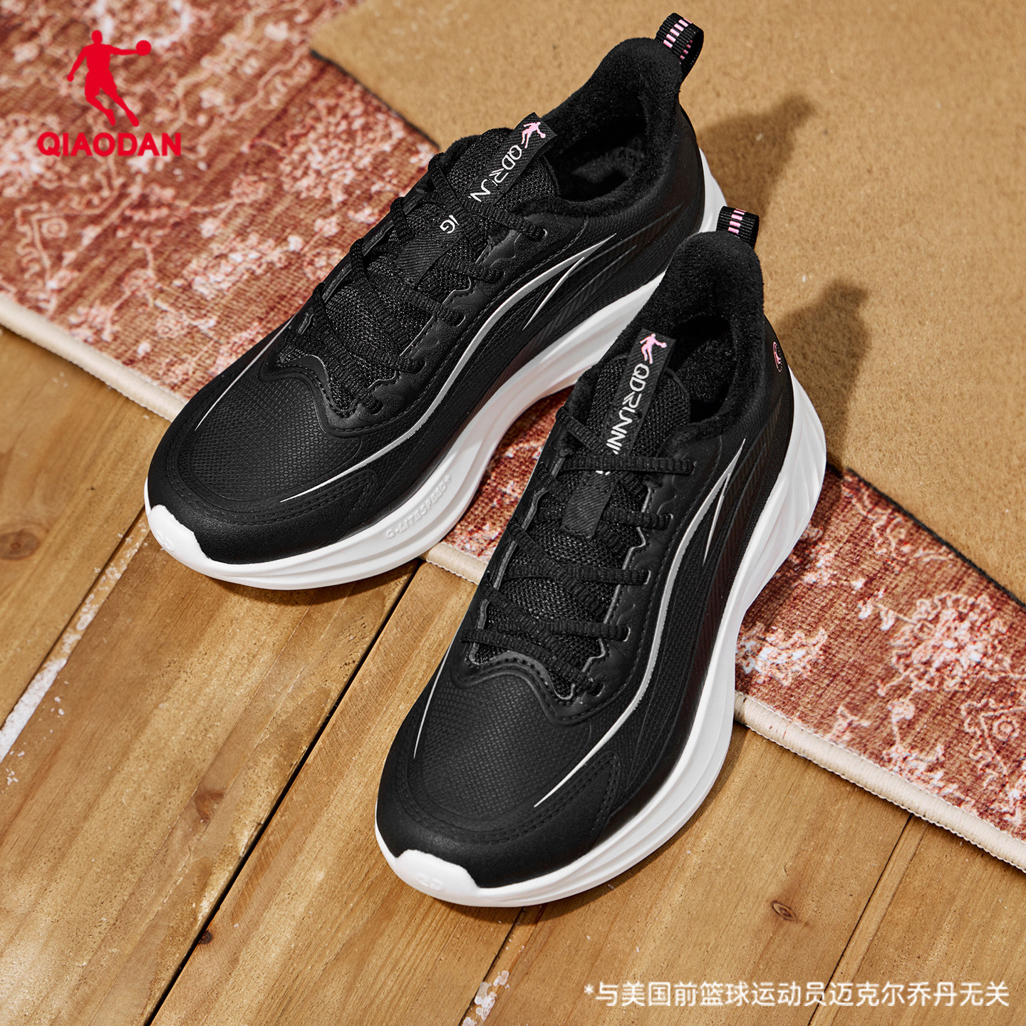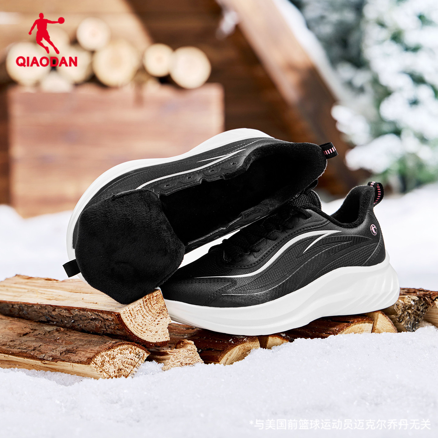 乔丹悦雨皮面防水黑色跳绳棉鞋