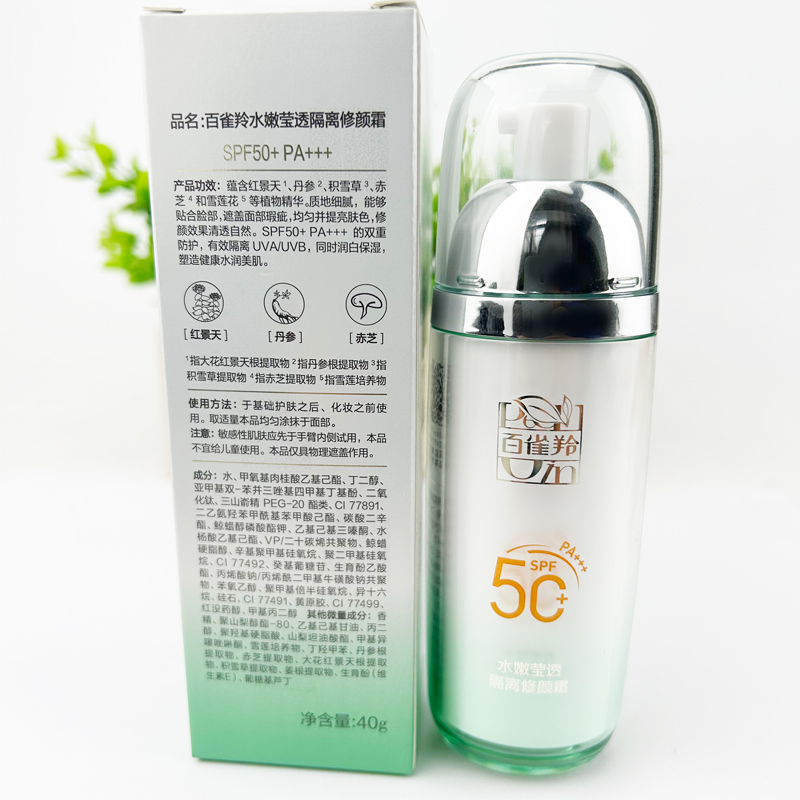 百雀羚水嫩莹透隔离修颜霜SPF50+PA+++防晒遮瑕保湿提亮肤色正品