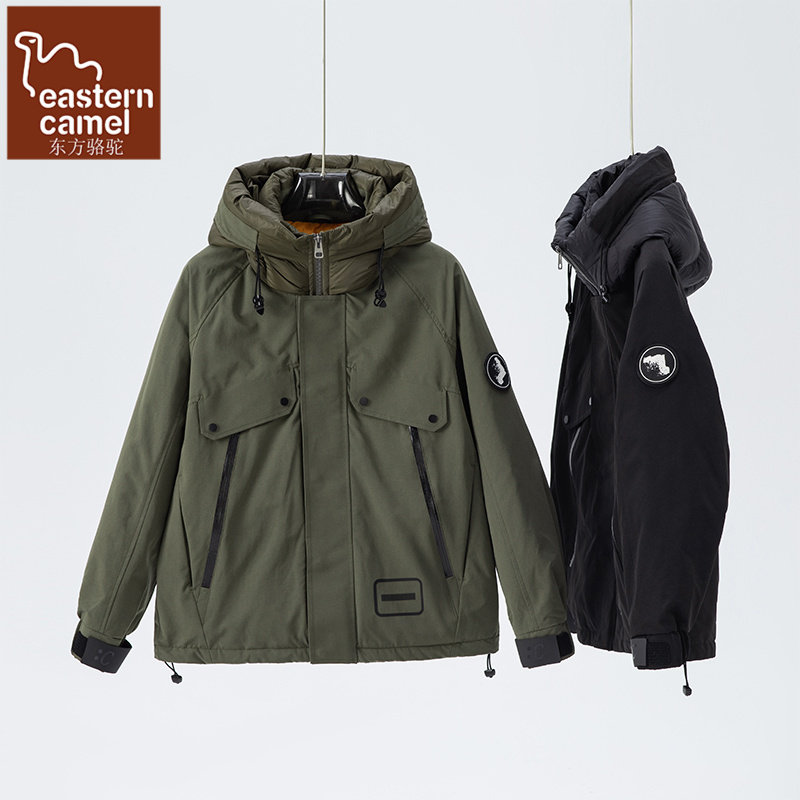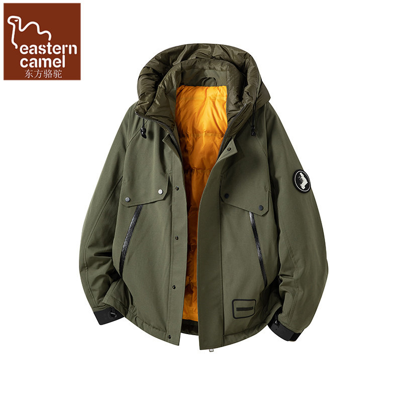 东方骆驼90白鸭绒工装连帽轻薄羽绒服男款冬季加厚保暖冲锋衣外套