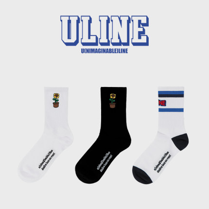 FLOAT ULINE休闲袜子男韩版ins潮白色中筒袜运动街头篮球长袜女