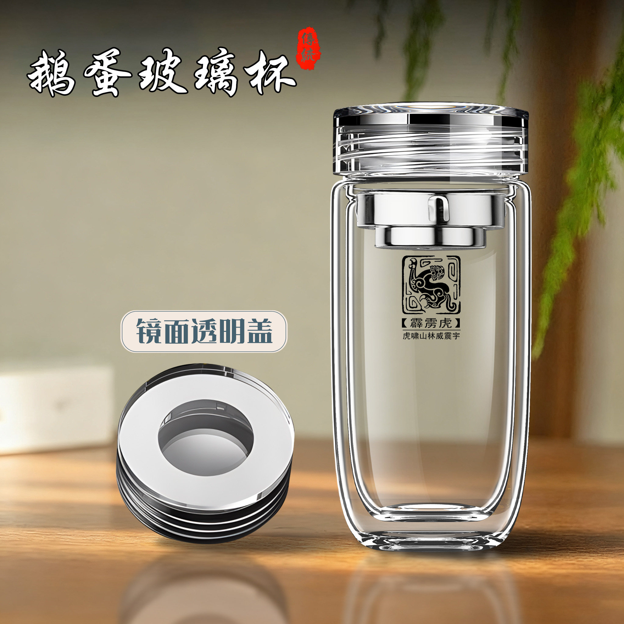 水晶鹅蛋杯双层加厚玻璃杯便携车载茶水分离泡茶杯子定制刻字生肖