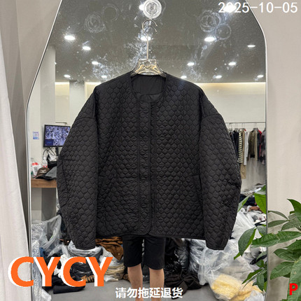 欧洲站2025秋季新款百搭圆领格纹宽松休闲加绒羊毛棉服外套女潮