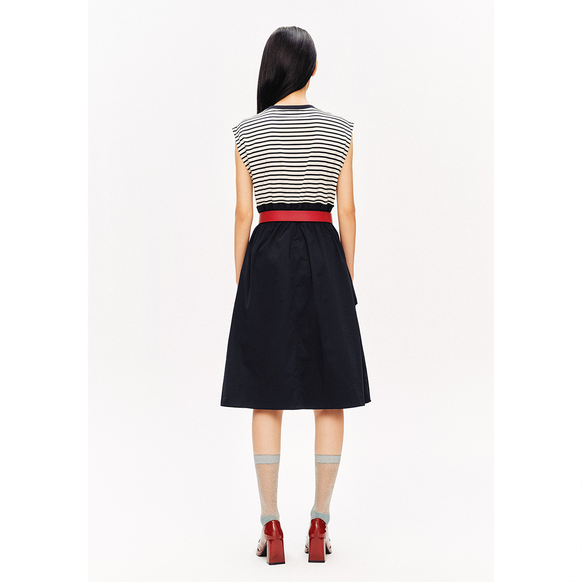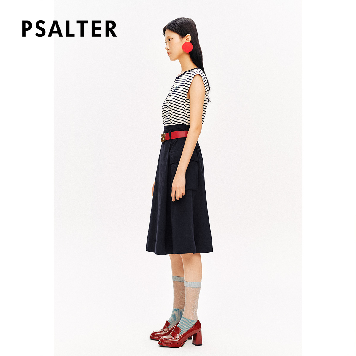 [智性学院风]PSALTER诗篇圆领条纹拼接假两件无袖连衣裙夏