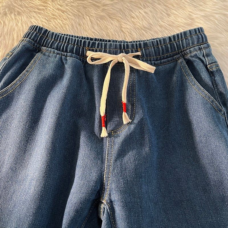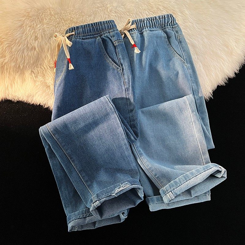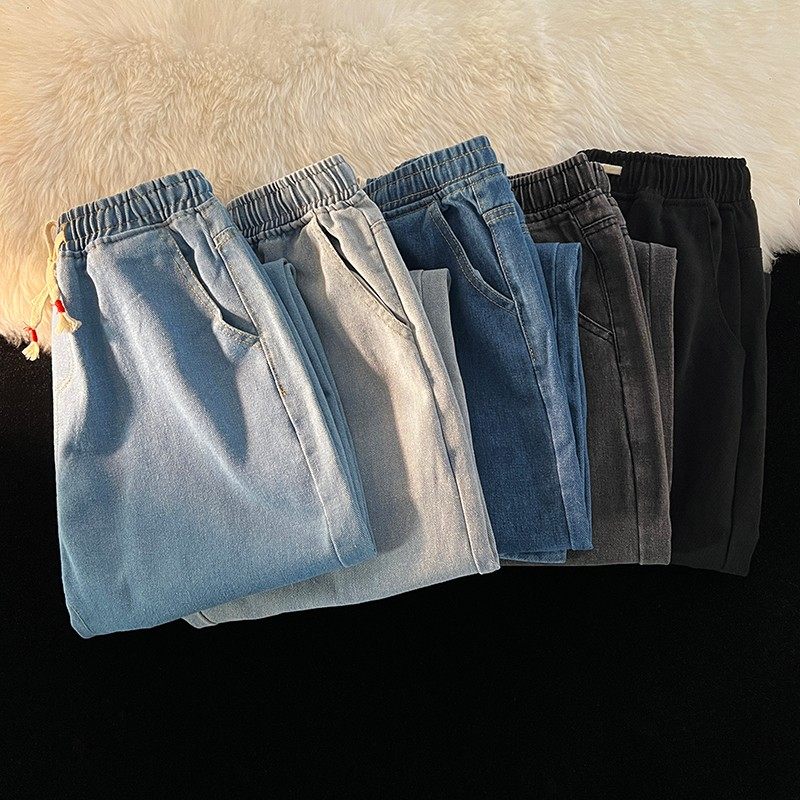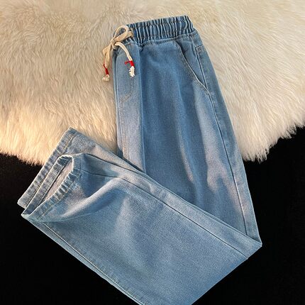 薄款系绳直筒水洗牛仔裤