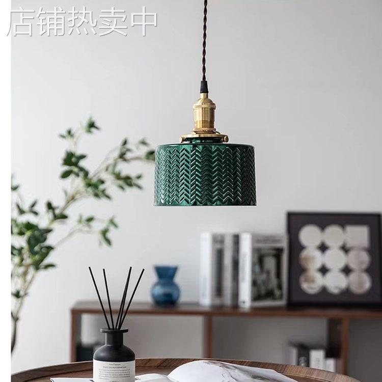 日式复古黄铜玻璃小吊灯 北欧美式乡村怀旧简约 吧台餐厅床头吊灯