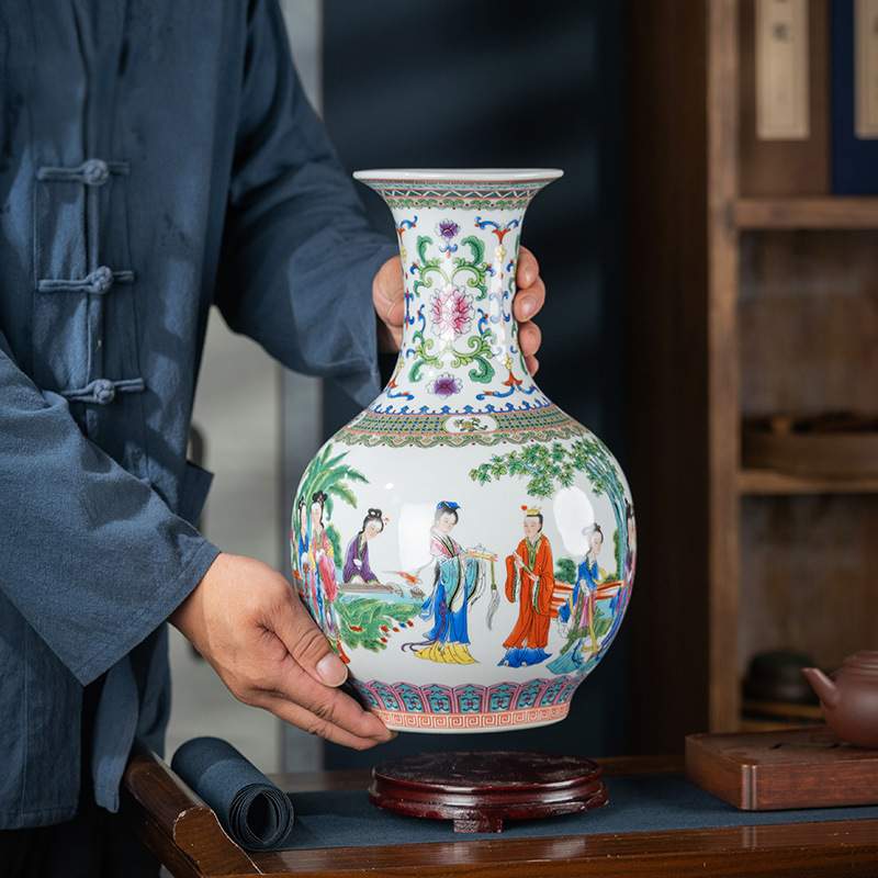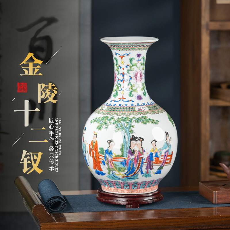 复古装饰品摆件粉彩金陵十二钗赏瓶景德镇工艺品陶瓷小花瓶收藏品