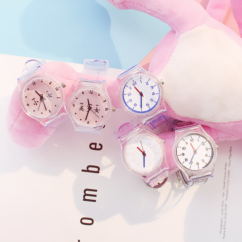 创意搞怪手绘手表简约透明手表文字元素少女休闲学生腕表动漫周边