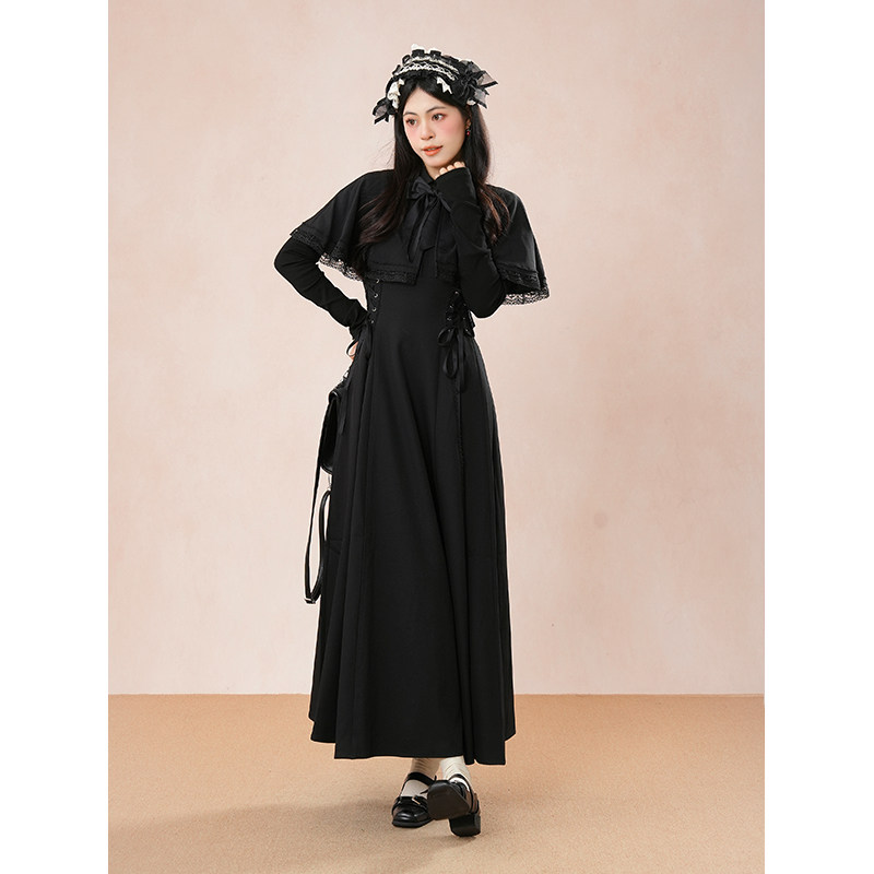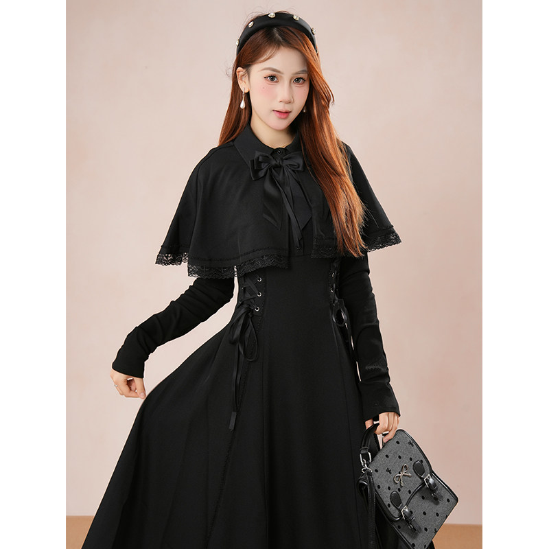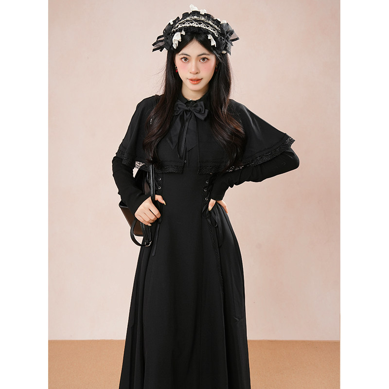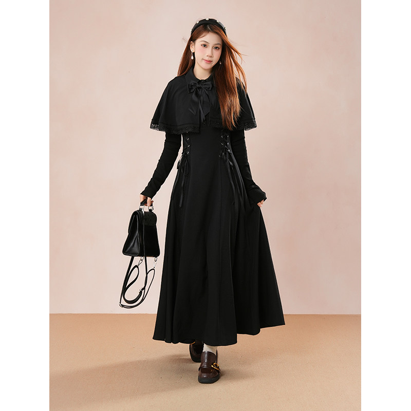 【第十三夜】哥特优雅收腰显瘦连衣裙女2025新款高级感斗篷连衣裙