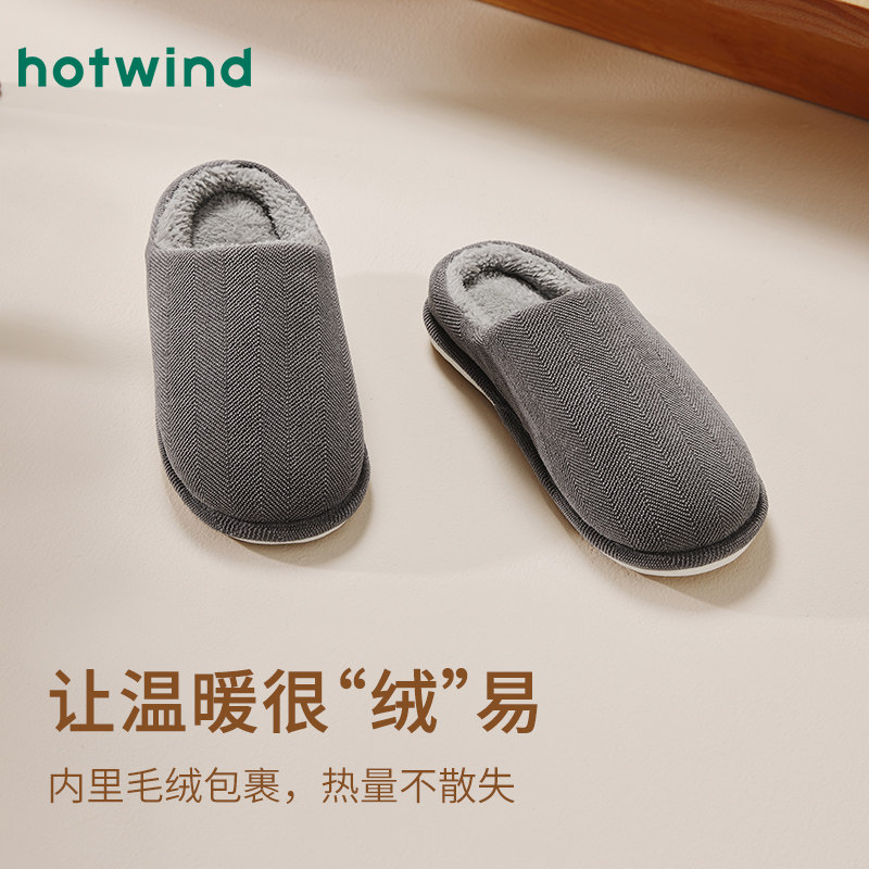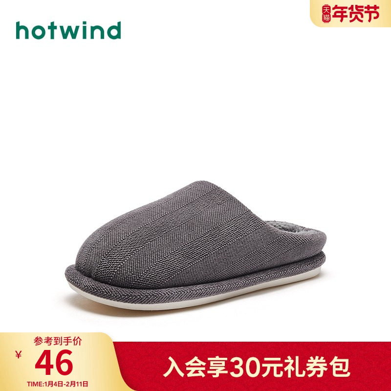 热风男鞋冬季新款男士时尚家居鞋加绒保暖平跟素面包头棉拖鞋