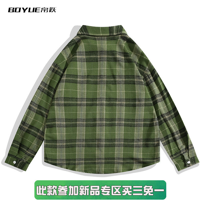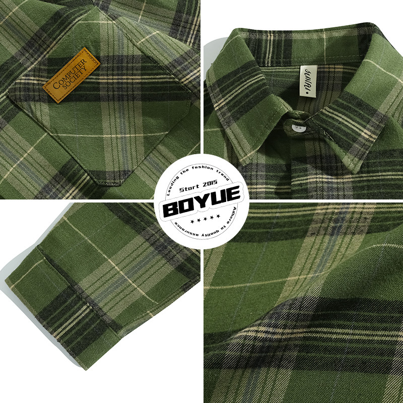 BOYUE帛跃格子长袖绿色衬衣衬衫