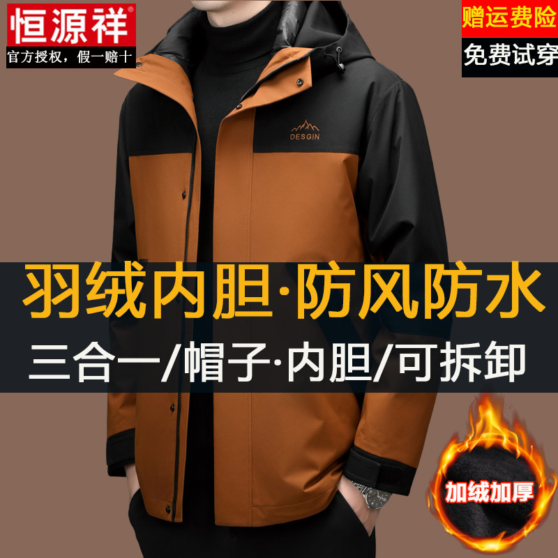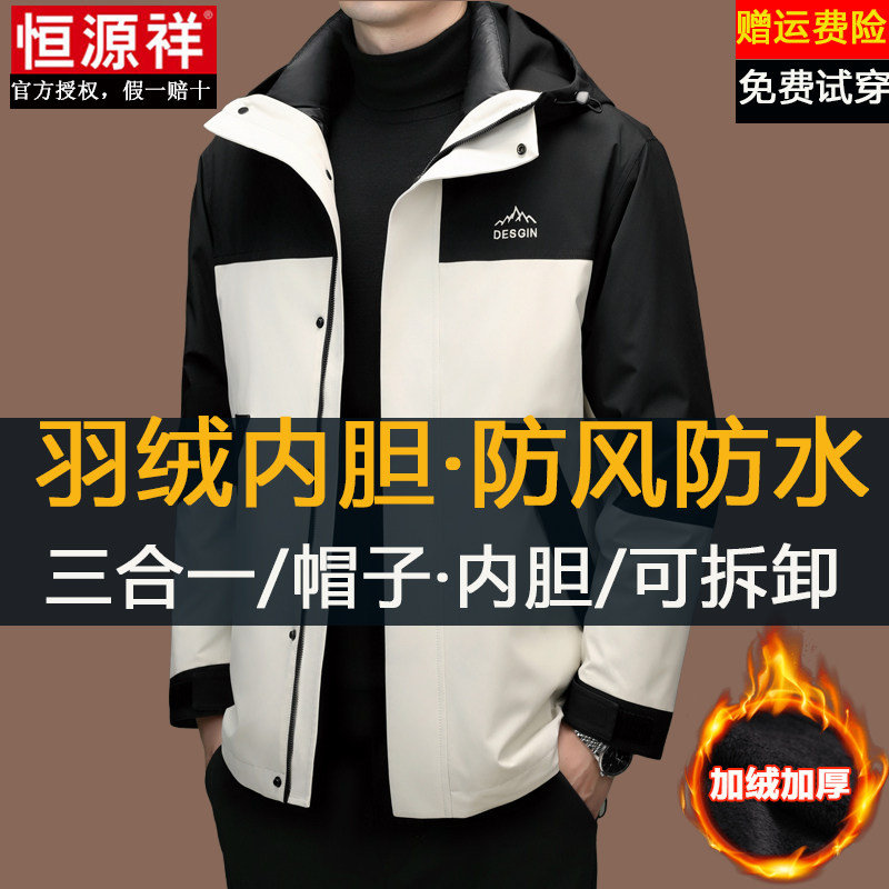 恒源祥冲锋衣男冬季加绒加厚三合一可拆卸羽绒服内胆防水防风外套
