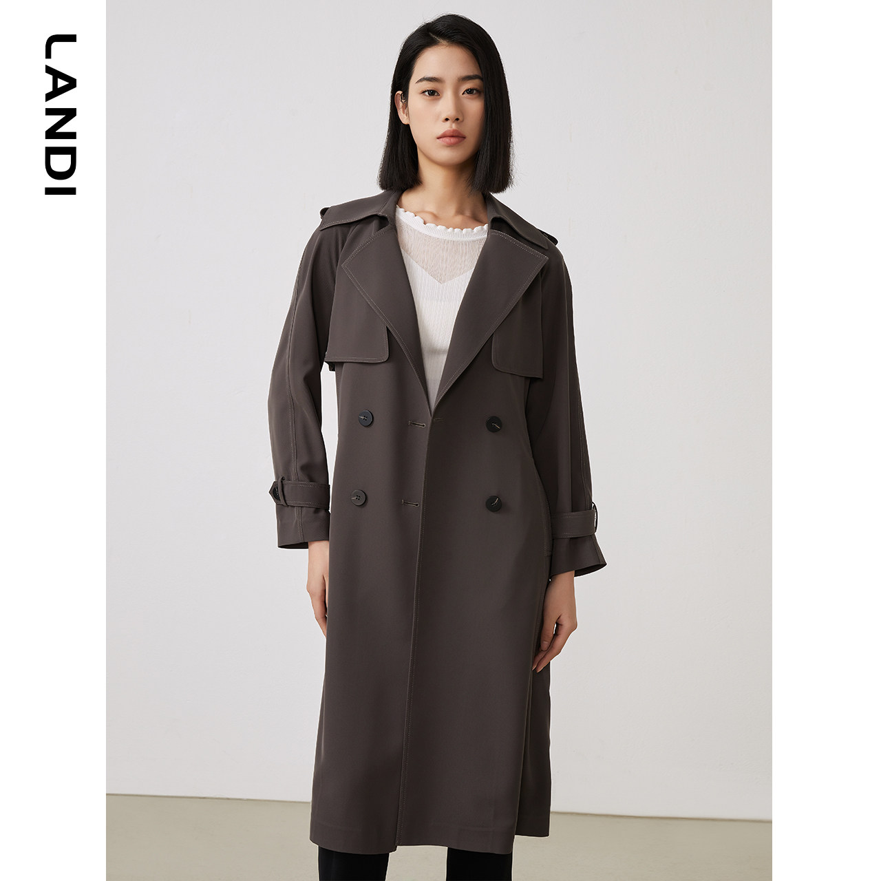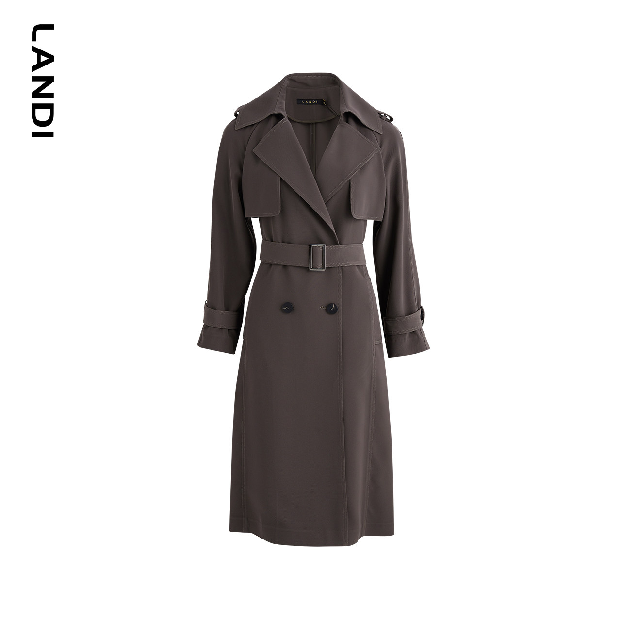 LANDI长款插肩袖双排扣风衣外套