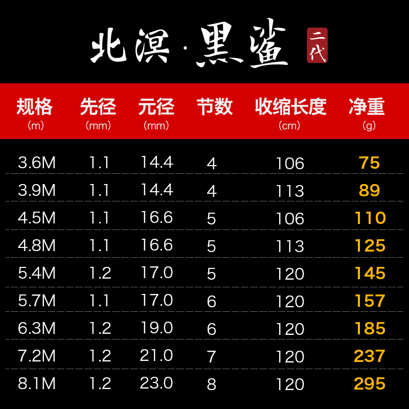 北溟鱼黑鲨二代钓鱼竿6.3米鱼竿8.1台钓竿28调超轻超硬鲤鱼竿手竿